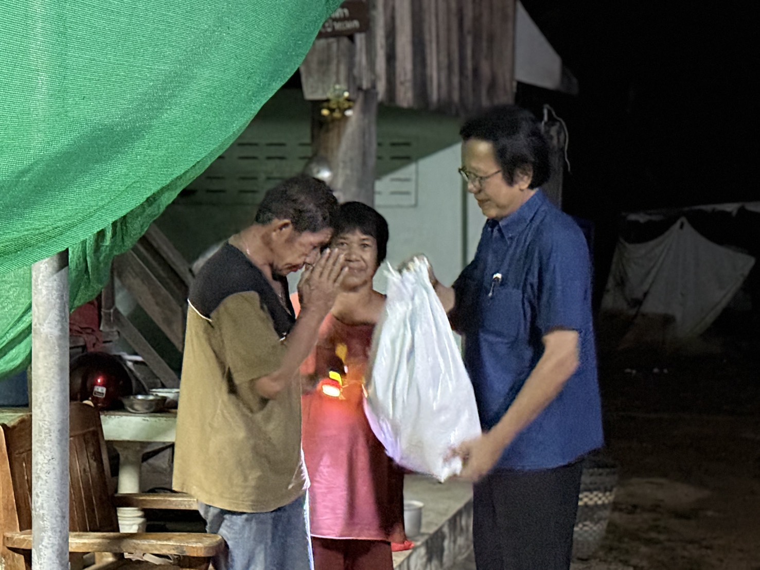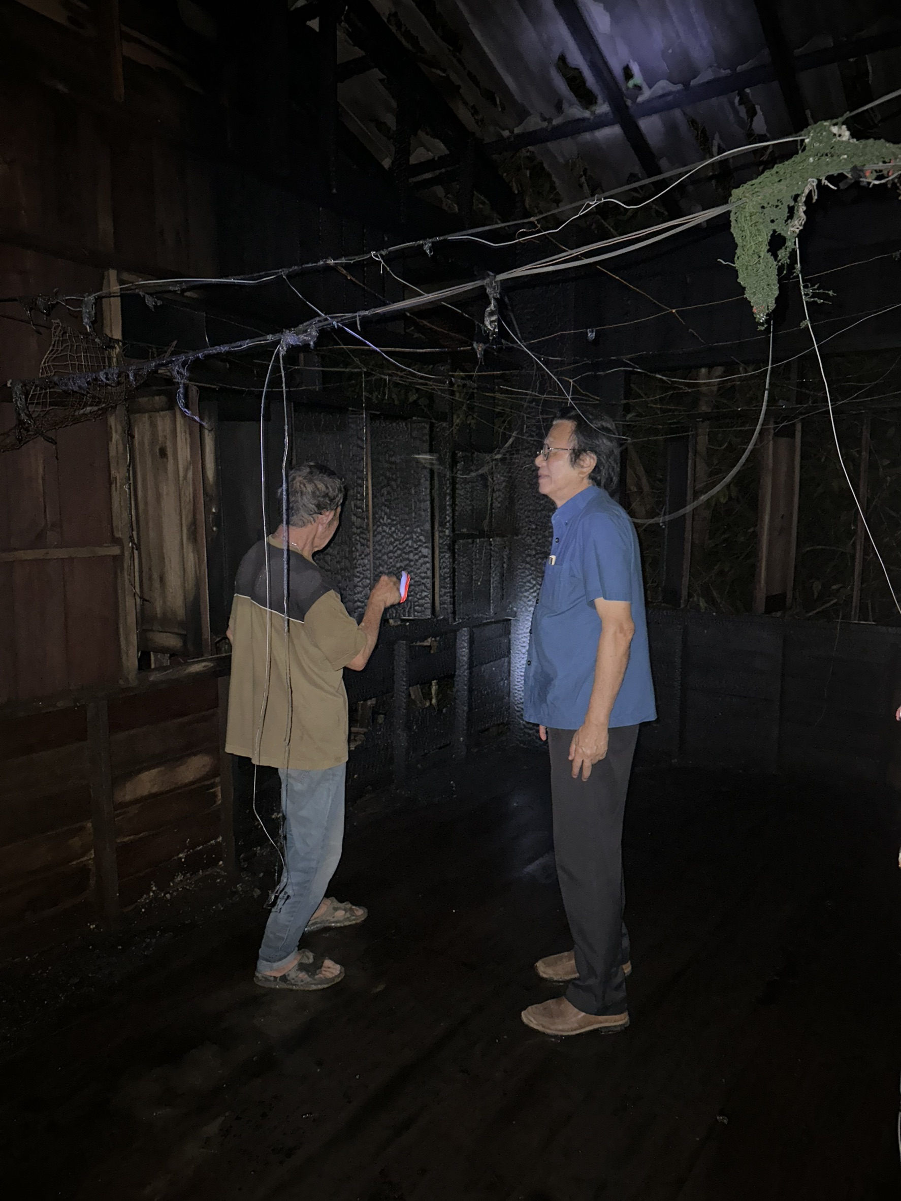 ในบ้านมีลูกหลานของเจ้าของบ้านซึ่งป่วยนอนอยู่บนเตียง ไม่ยอมลุกเพราะตกใจ ต้องอาศัยเจ้าหน้าที่กู้ภัยและชาวบ้านช่วยกันยกเตียงออกมาทั้งเตียงเพื่อความปลอดภัย นอกจากนี้ยังมีสุนัขอีก 2 ตัวที่อยู่ใต้ถุนบ้าน ต่างตกใจเห่าและหอนเสียงดังไปทั่ว