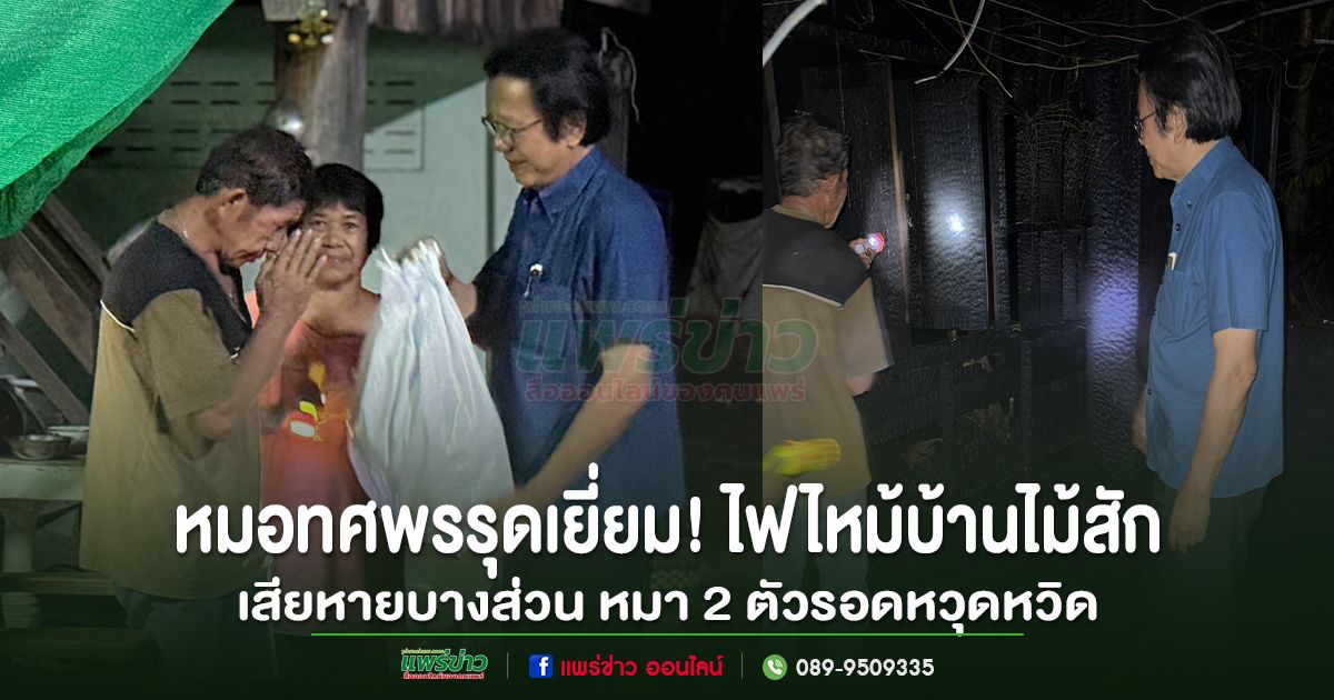 หลังเพลิงสงบ นายแพทย์ทศพร เสรีรักษ์ สมาชิกสภาผู้แทนราษฎรจังหวัดแพร่ เขต 1 ได้รีบลงพื้นที่ เข้าเยี่ยมให้กำลังใจเจ้าของบ้าน พร้อมมอบความช่วยเหลือเบื้องต้น และประสานหน่วยงานที่เกี่ยวข้องเข้าประเมินความเสียหายเพื่อช่วยเหลืออย่างเร่งด่วน