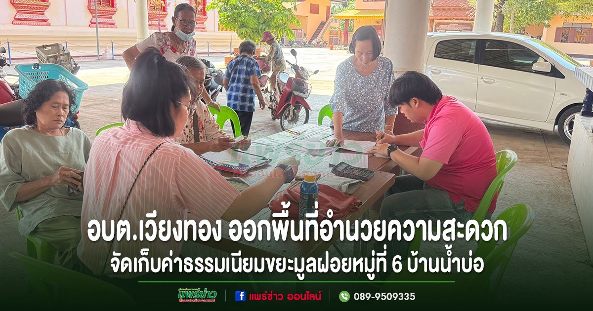 วันที่ 21 ตุลาคม 2568กองคลัง องค์การบริหารส่วนตำบลเวียงทอง อำเภอสูงเม่น จังหวัดแพร่ ได้ออกพื้นที่ให้บริการจัดเก็บ ค่าธรรมเนียมขยะมูลฝอย ประจำปีงบประมาณ พ.ศ. 2569โดยในวันนี้ออกให้บริการในพื้นที่ หมู่ที่ 6 ณ วัดน้ำบ่อ หมู่ที่ 6 ตำบลเวียงทอง