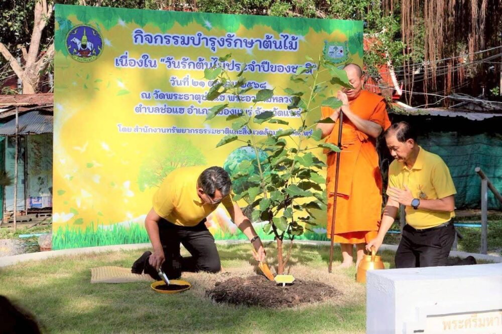 ในการนี้ มีพระโกศัยเจติยารักษ์ ดร. รองเจ้าคณะจังหวัดแพร่ เจ้าอาวาสวัดพระธาตุช่อแฮ พระอารามหลวง พร้อมด้วยหัวหน้าส่วนราชการ ข้าราชการ และประชาชนจิตอาสา เข้าร่วมกิจกรรม พรวนดิน ใส่ปุ๋ย รดน้ำต้นไม้ บริเวณวัดพระธาตุช่อแฮ พระอารามหลวง เพื่อเป็นการส่งเสริมการดูแลรักษาต้นไม้ และเพิ่มพื้นที่สีเขียวภายในวัดและชุมชนโดยรอบ