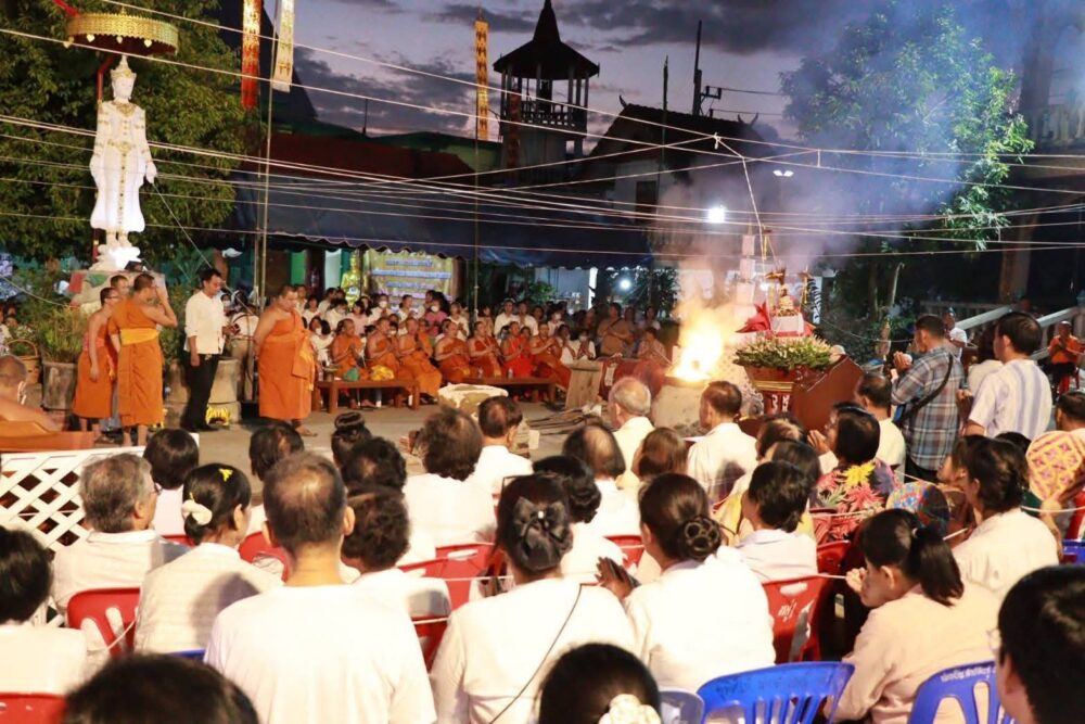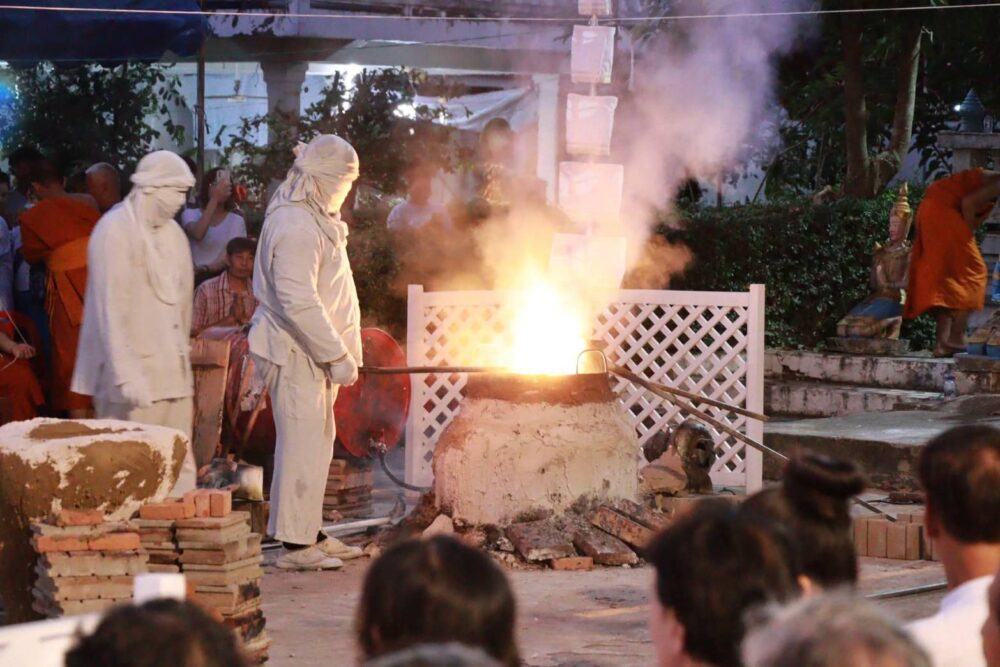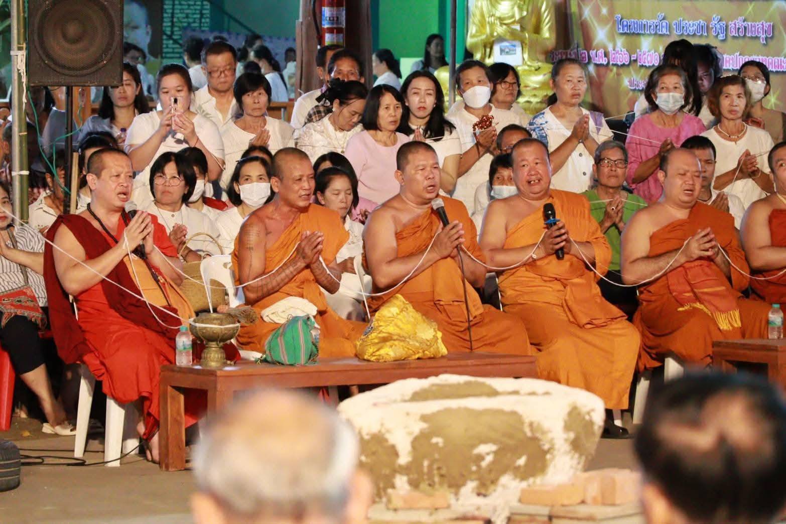 ฝ่ายสงฆ์นำโดย พระมหานันทวัฒน์ ธมฺมิกวาโท เจ้าอาวาสวัดสบสายเป็นประธานฝ่ายสงฆ์ ในพิธีเททองหล่อพระเจ้าธัญญมุนี ซึ่งมีมวลสารศักดิ์สิทธิ์และแผ่นยันต์หนุนดวงนำฤกษ์ในพิธี เพื่อถวายเป็นพุทธบูชา และจะอัญเชิญไปประดิษฐานในอุโบสถวัดสบสาย โดยพิธีเริ่มขึ้นเวลา 17.00 น. พิธีบวงสรวง พระสงฆ์เจริญพระพุทธมนต์ และเวลา 18.08 น. พิธีเททองหล่อพระเจ้าธัญญมุนี