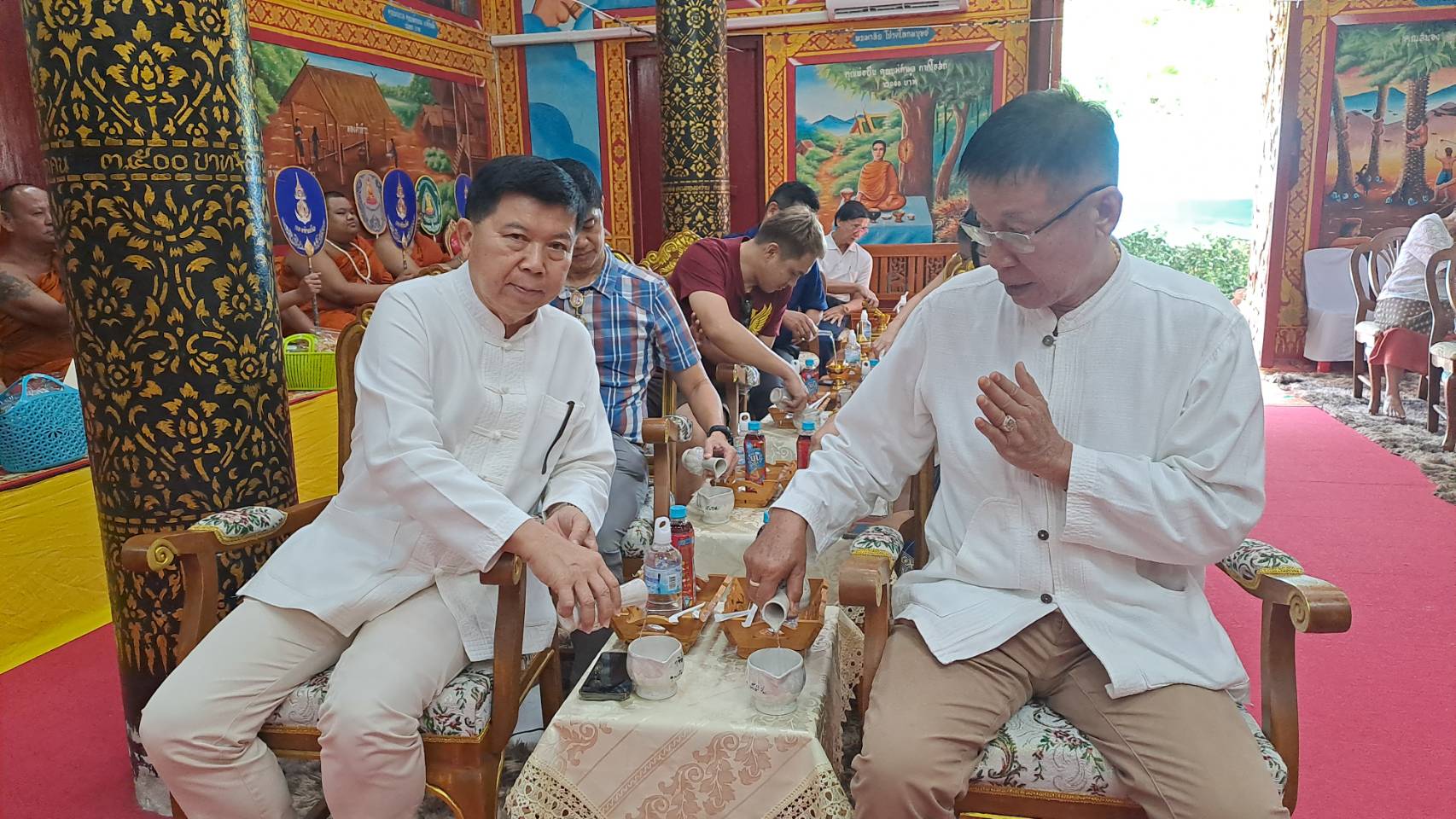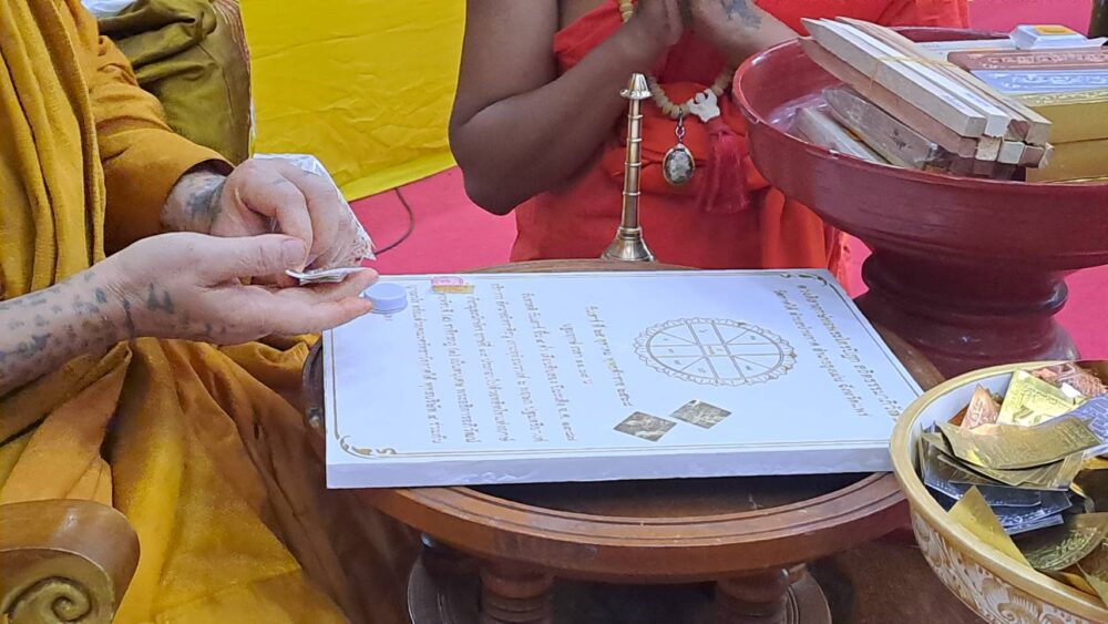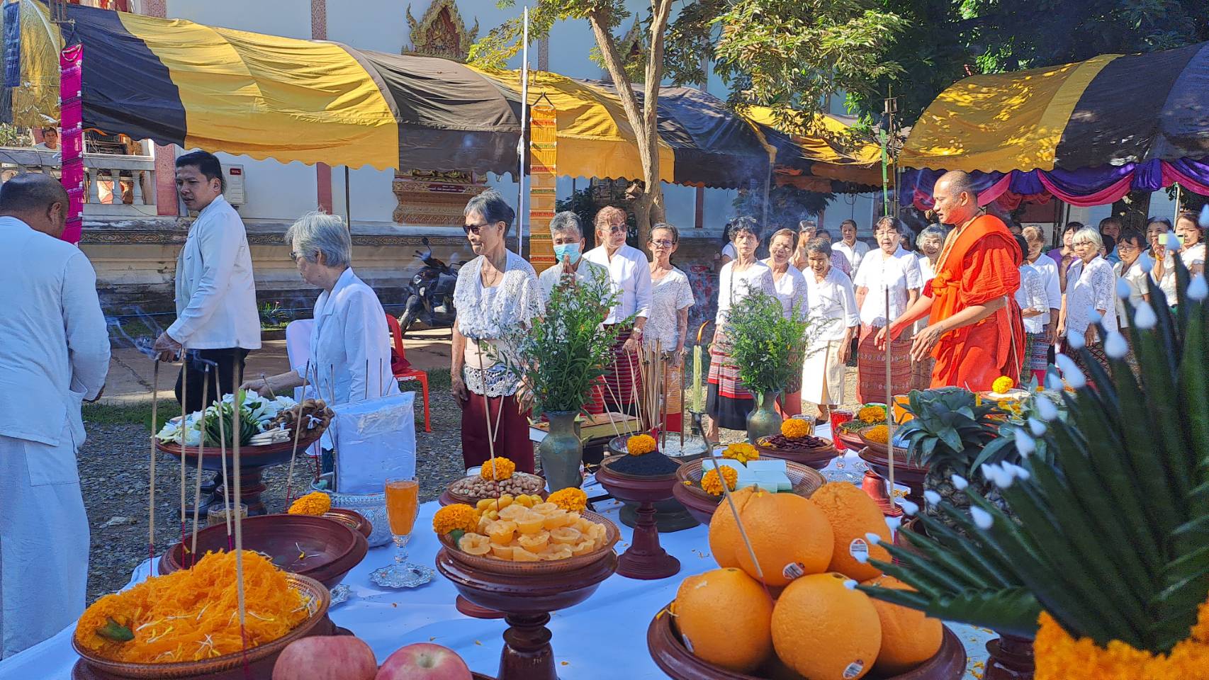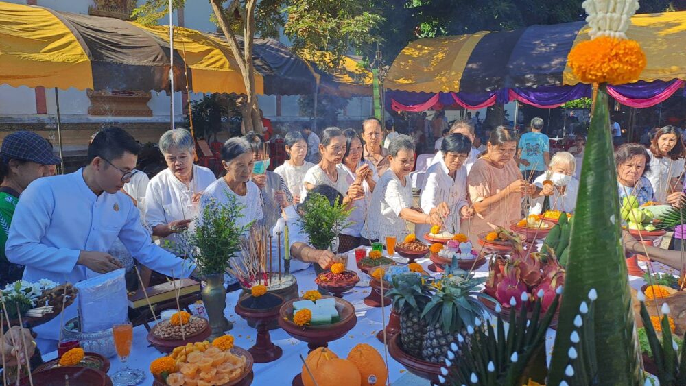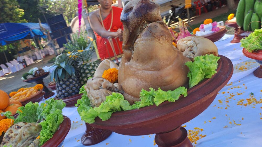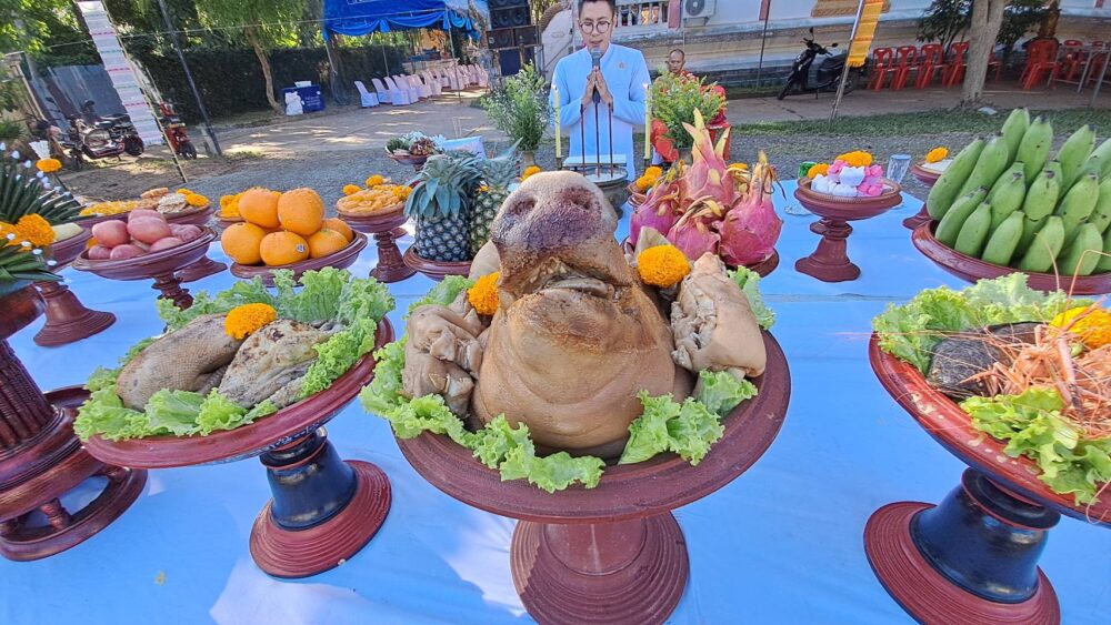 ก่อนเริ่มพิธี ได้มีการบวงสรวงเจ้าที่โดยคณะพราหมณ์ของ อาจารย์นพดล พรายกลางโดยมี พระอธิการอภิวัฒน์ ญาณวโร เจ้าอาวาสวัดกาศใต้ จุดธูปเทียนบูชาพิธีบวงสรวงตามแบบโบราณโดยมีนายมานะ กาศโอสถ นายกองค์การบริหารส่วนตำบลบ้านกาศ พร้อมคณะศรัทธาชาวตำบลบ้านกาศและพื้นที่ใกล้เคียง มาร่วมอนุโมทนาบุญในบรรยากาศเปี่ยมด้วยศรัทธาและความร่วมแรงร่วมใจของชุมชน