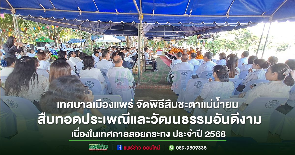 วันที่ 4 พฤศจิกายน 2568 เวลา 09.00 น. ที่บริเวณท่าน้ำเชตวัน ตำบลในเวียง อำเภอเมืองแพร่ นายสมชัย เลิศประสิทธิพันธ์ ผู้ว่าราชการจังหวัดแพร่ พร้อมด้วยนายสุริยา อินต๊ะนอน นายกเทศมนตรีเมืองแพร่ นำหัวหน้าส่วนราชการ ข้าราชการ และประชาชน ร่วมประกอบพิธีสืบชะตาแม่น้ำยม เพื่อขอขมาต่อแม่น้ำยม เนื่องในเทศกาลลอยกระทง ประจำปี 2568 โดยเทศบาลเมืองแพร่ได้จัดขึ้นเป็นประจำทุกปี เพื่ออนุรักษ์และสืบสานประเพณีท้องถิ่นที่ดีงามของชาวล้านนาให้คงอยู่คู่เมืองแพร่ ภายในพิธีมีการสืบชะตาแม่น้ำตามแบบล้านนา และกิจกรรมปล่อยพันธุ์ปลาลงสู่แม่น้ำยมการสาธิตการแสดงจากชมรมรักษ์สิ่งแวดล้อมโรงเรียนสาธิตเทศบาลบ้านเชตวัน เพื่อแสดงความกตัญญูต่อแหล่งน้ำสายสำคัญของชาวแพร่ พร้อมทั้งเป็นการอนุรักษ์ระบบนิเวศในแม่น้ำให้คงความอุดมสมบูรณ์