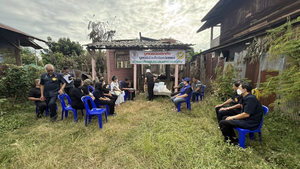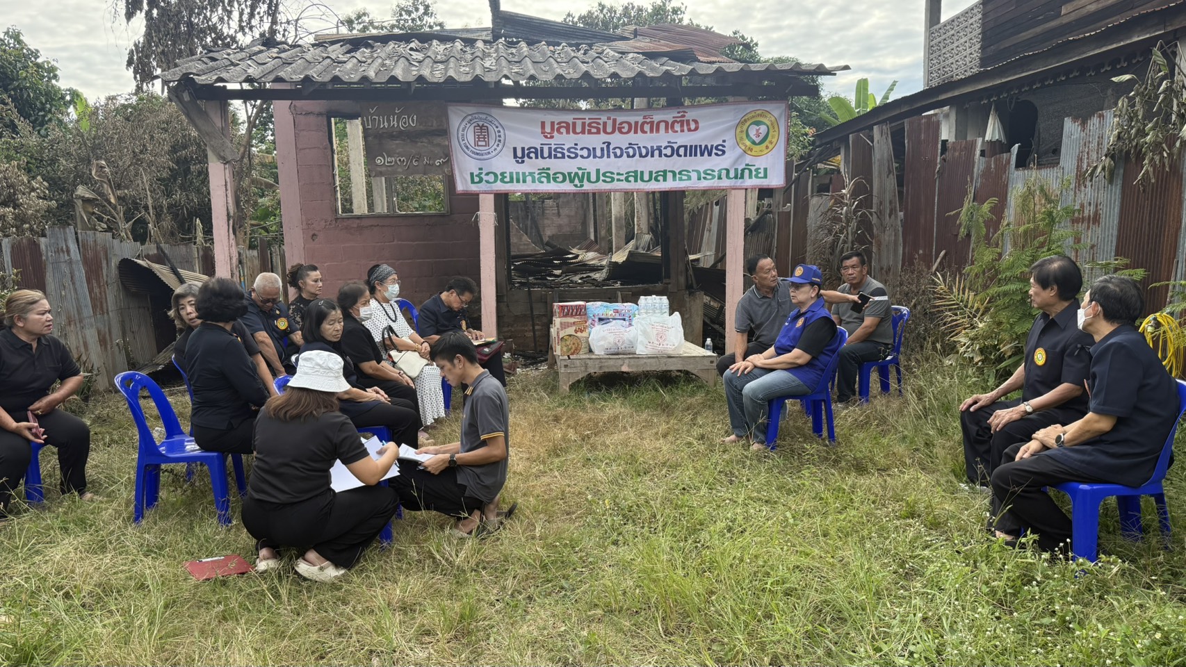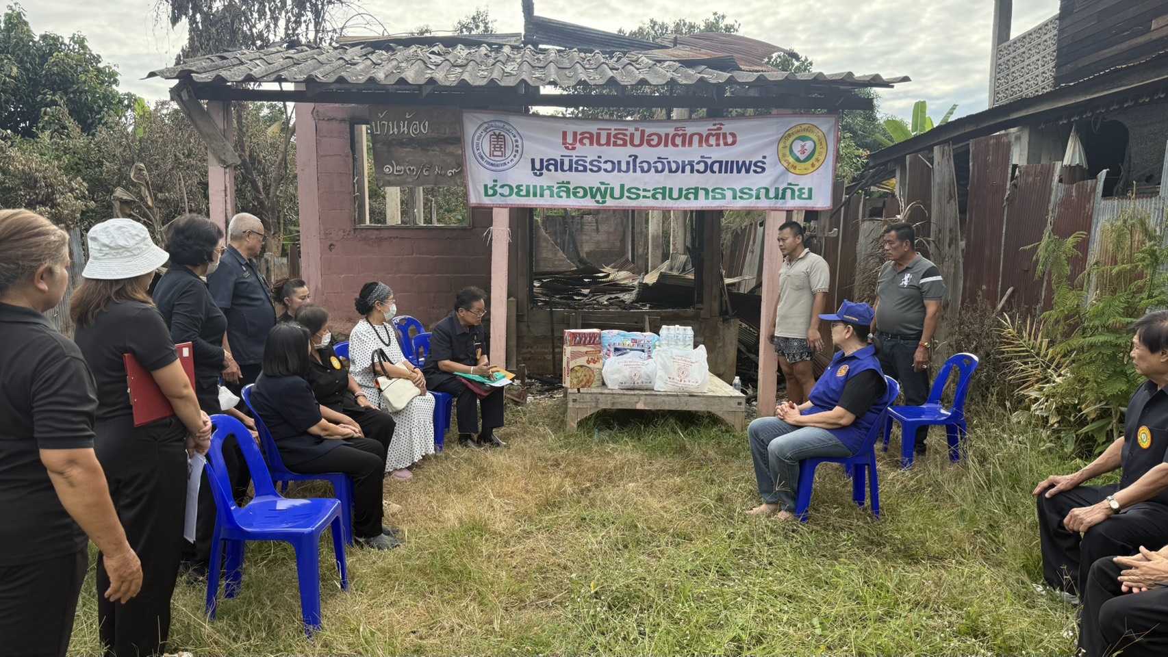 ในโอกาสเดียวกันนี้ มูลนิธิป่อเต็กตึ๊ง และ มูลนิธิร่วมใจจังหวัดแพร่ ได้ลงพื้นที่มอบเงินช่วยเหลือ พร้อมสิ่งของอุปโภคบริโภค เพื่อบรรเทาความเดือดร้อนแก่ผู้ประสบสาธารณภัย ณ บ้านหมู่ที่ 9 ตำบลเวียงทอง อำเภอสูงเม่น จังหวัดแพร่