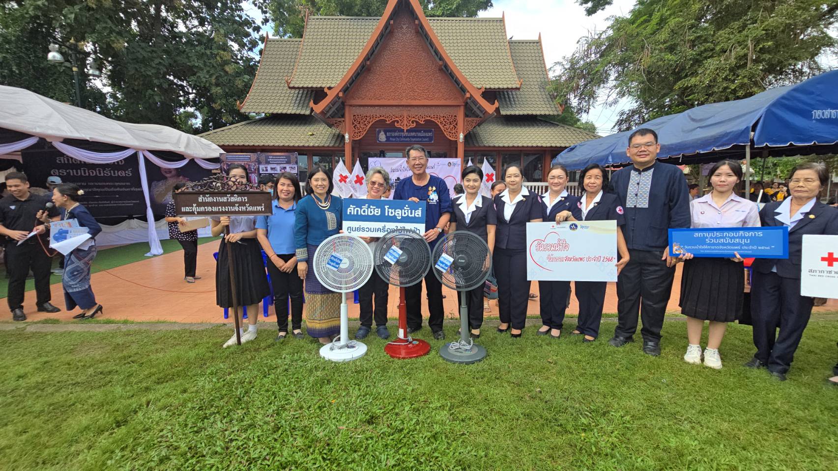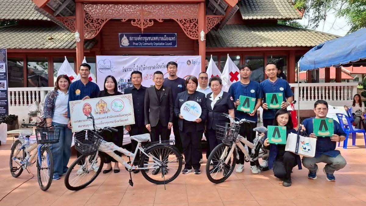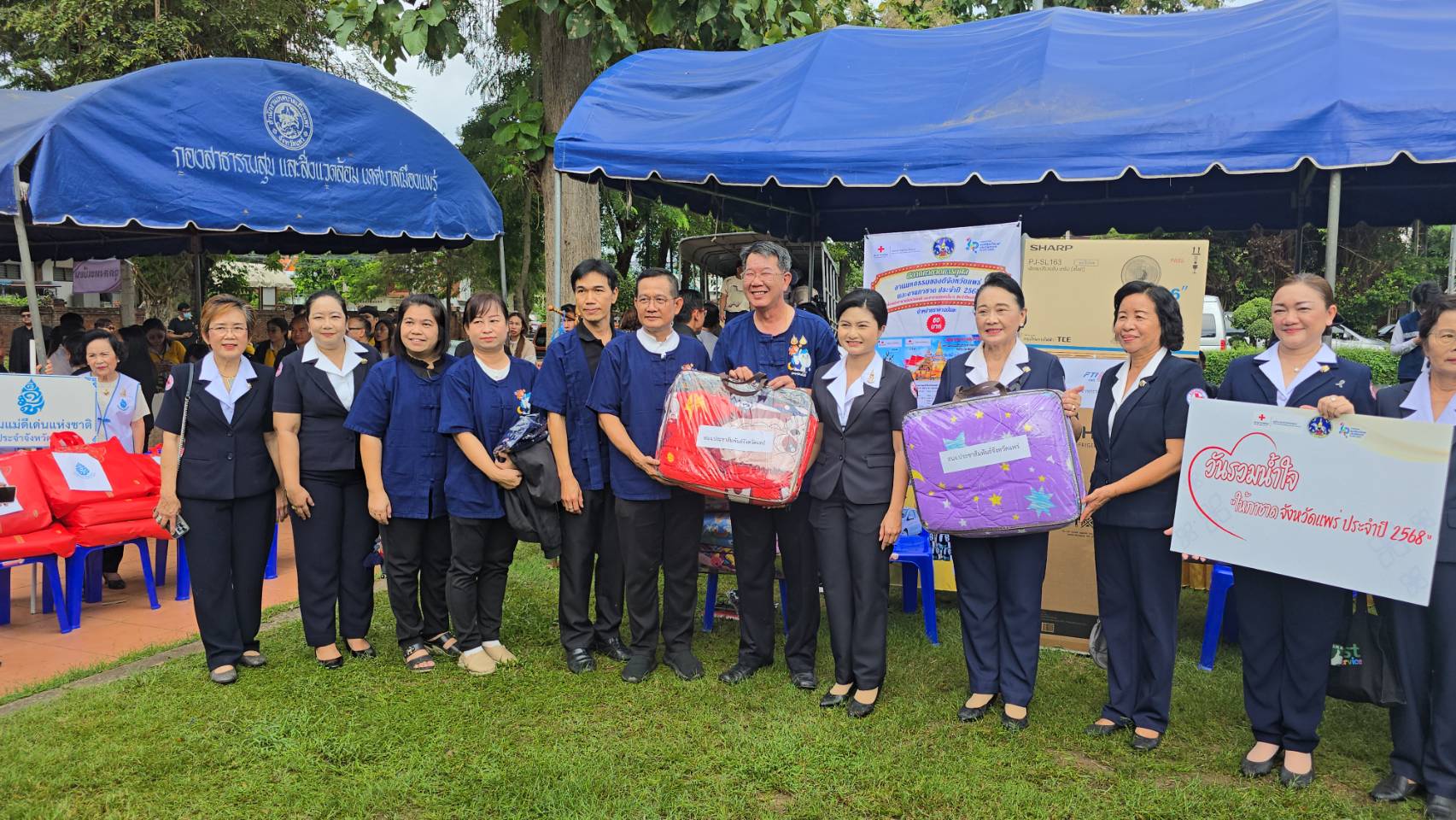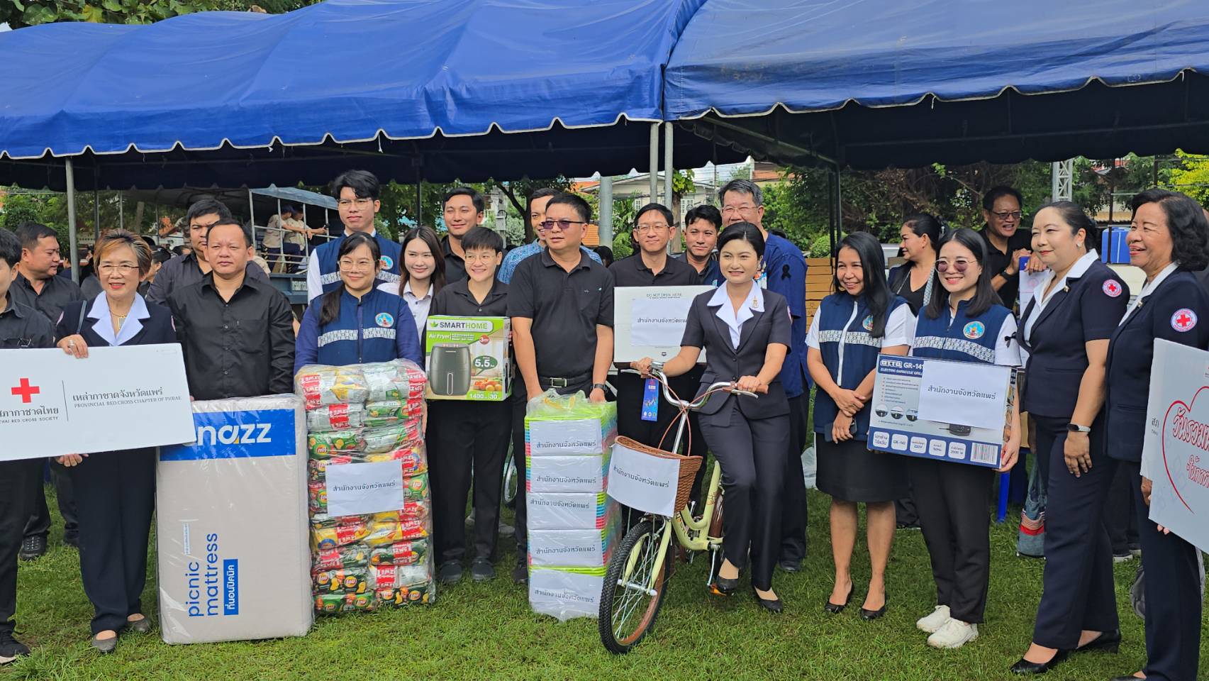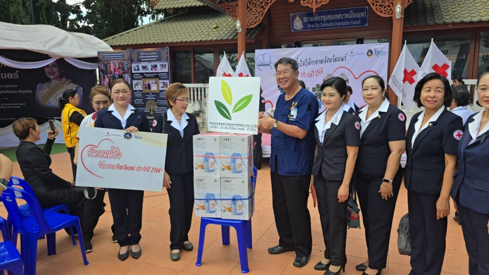 วันที่ 11 พฤศจิกายน 2568 เวลา 09.00 น. ที่สวนสุขภาพเฉลิมพระเกียรติ ร.9 อ.เมืองแพร่ จ.แพร่ นายสมชัย เลิศประสิทธิพันธ์ ผวจ.แพร่ พร้อมด้วย นางสาวฐิติมา สุภาพันธ์ นายกเหล่ากาชาดจังหวัดแพร่ ร่วมรับมอบสิ่งของ “วันรวมน้ำใจให้กาชาดจังหวัดแพร่ ประจำปี 2568” โดยมี นายคุณากร คชหิรัญ รอง ผวจ.แพร่ คณะกรรมการเหล่ากาชาดจังหวัด หน่วยงานราชการ รัฐวิสาหกิจ องค์กรปกครองส่วนท้องถิ่น ภาคเอกชน และอำเภอทั้ง 8 อำเภอ นำสิ่งของต่างๆ เงินสด รถจักรยานยนต์ เครื่องใช้ไฟฟ้า ตู้เย็น พัดลม เครื่องซักผ้า รถจักรยาน ผ้าห่ม ขนม อุปกรณ์เครื่องใช้อื่นๆ มาร่วมบริจาคเป็นจำนวนมาก