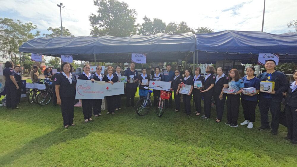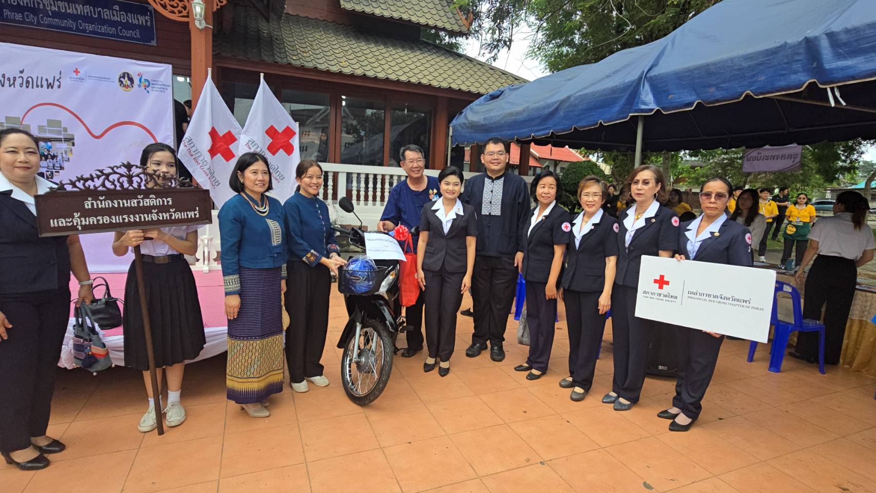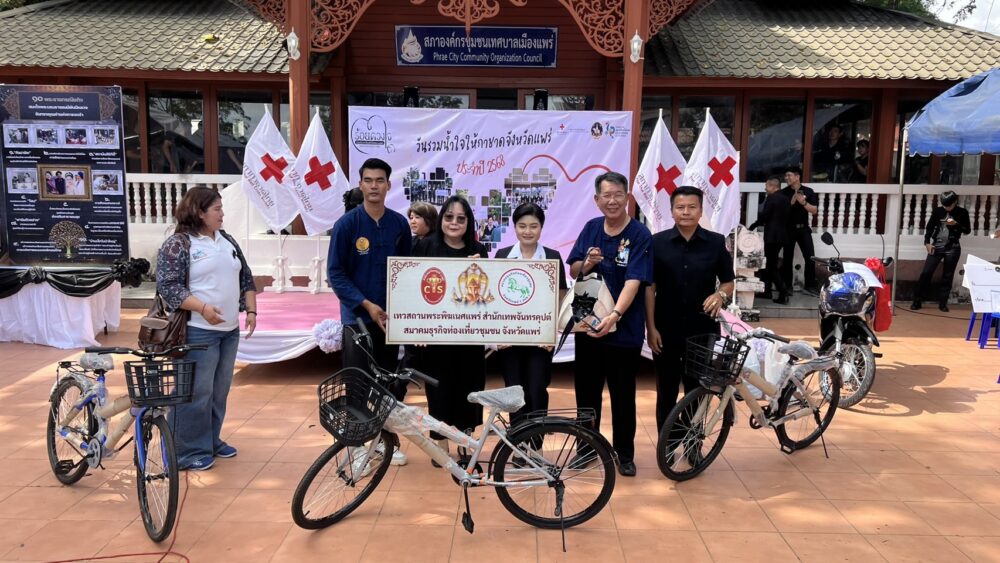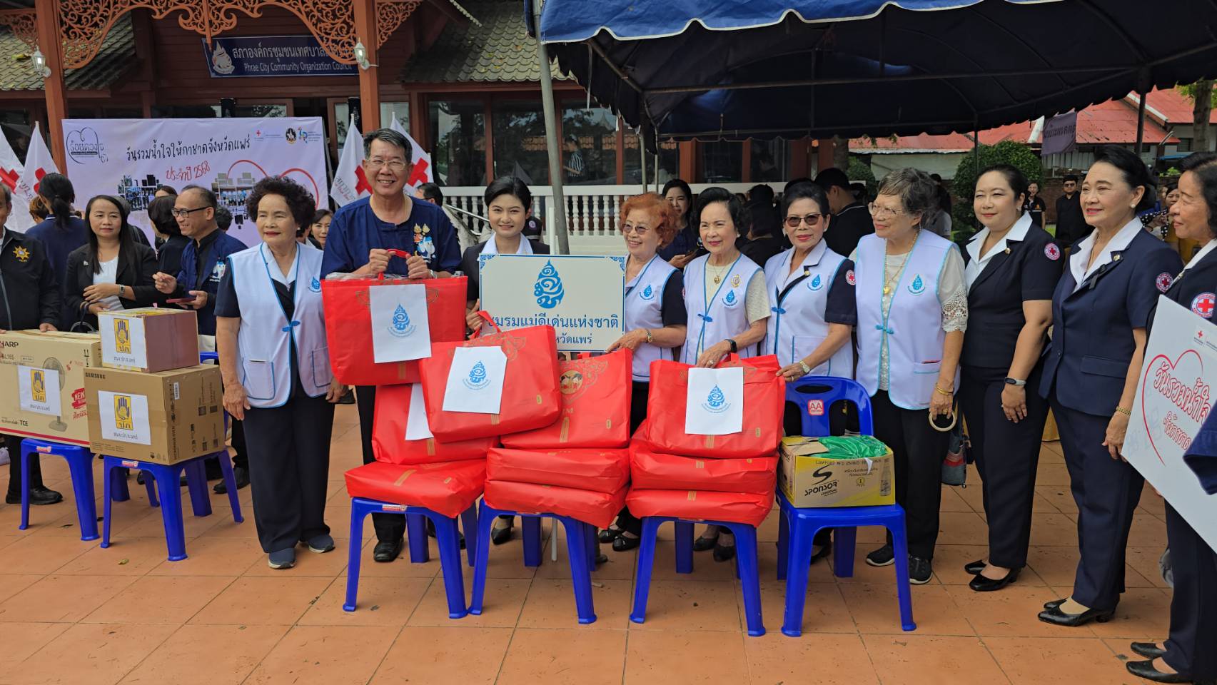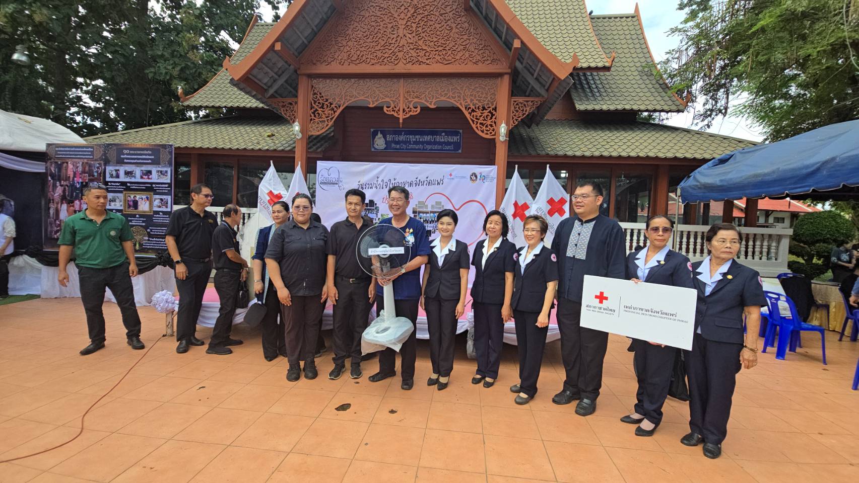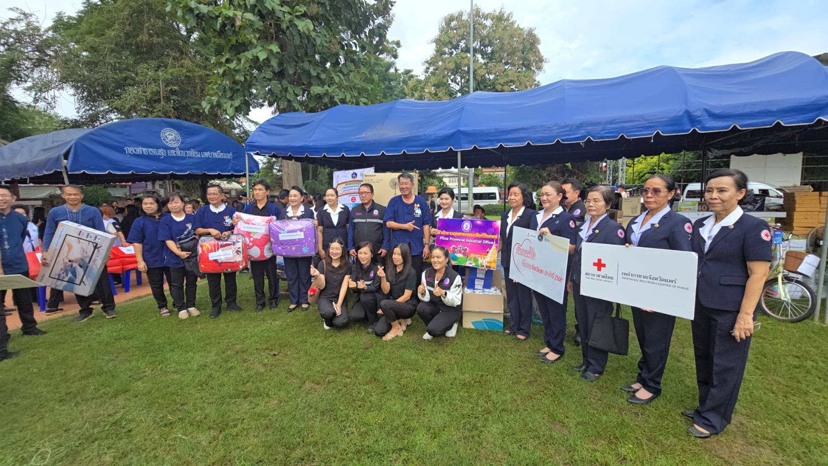 วันที่ 11 พฤศจิกายน 2568 เวลา 09.00 น. ที่สวนสุขภาพเฉลิมพระเกียรติ ร.9 อ.เมืองแพร่ จ.แพร่ นายสมชัย เลิศประสิทธิพันธ์ ผวจ.แพร่ พร้อมด้วย นางสาวฐิติมา สุภาพันธ์ นายกเหล่ากาชาดจังหวัดแพร่ ร่วมรับมอบสิ่งของ “วันรวมน้ำใจให้กาชาดจังหวัดแพร่ ประจำปี 2568” โดยมี นายคุณากร คชหิรัญ รอง ผวจ.แพร่ คณะกรรมการเหล่ากาชาดจังหวัด หน่วยงานราชการ รัฐวิสาหกิจ องค์กรปกครองส่วนท้องถิ่น ภาคเอกชน และอำเภอทั้ง 8 อำเภอ นำสิ่งของต่างๆ เงินสด รถจักรยานยนต์ เครื่องใช้ไฟฟ้า ตู้เย็น พัดลม เครื่องซักผ้า รถจักรยาน ผ้าห่ม ขนม อุปกรณ์เครื่องใช้อื่นๆ มาร่วมบริจาคเป็นจำนวนมาก