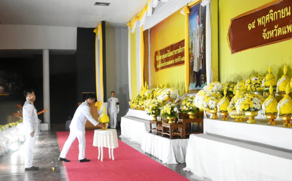 วันที่ 14 พฤศจิกายน 2568 นายสุริยา อินต๊ะนอน นายกเทศมนตรีเมืองแพร่ มอบหมายให้นายบุญทอง ปัญญาสว่างจิตร รองนายกเทศมนตรีเมืองแพร่ พร้อมด้วยหัวหน้าส่วนราชการ พนักงานเทศบาล ร่วมพิธีวางพานพุ่มดอกไม้สด ถวายราชสักการะ เนื่องในวันพระบิดาแห่งฝนหลวง ประจำปี 2568 ณ ศูนย์ประชุมและแสดงศิลปวัฒนธรรมล้านนาตะวันออกและกลุ่มประเทศ GMS บ้านกอเปา ตำบลทุ่งโฮ้ง อำเภอเมืองแพร่