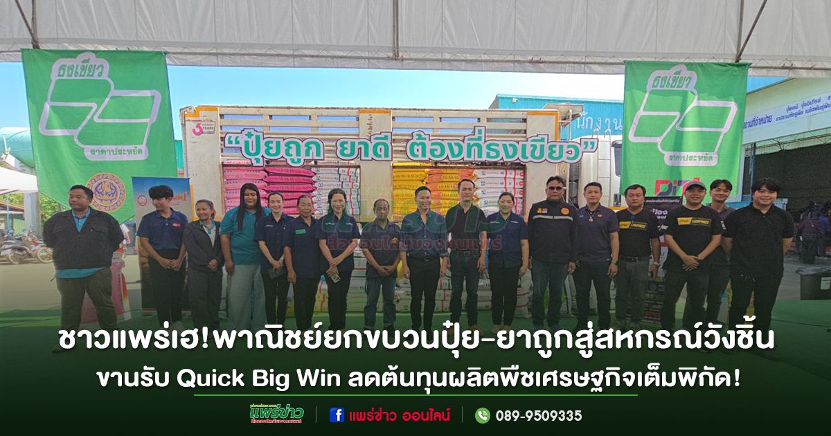 วันที่ 15 พฤศจิกายน 2568 กรมการค้าภายใน กระทรวงพาณิชย์ เดินหน้าจัดงาน “ธงเขียว ราคาประหยัด” ณ สหกรณ์การเกษตรวังชิ้น อำเภอวังชิ้น จังหวัดแพร่ โดยเป็นการขับเคลื่อนตามนโยบาย Quick Big Win ของรัฐมนตรีว่าการกระทรวงพาณิชย์ ซึ่งเน้นการดูแลราคาสินค้าเกษตรและลดต้นทุนการผลิตให้แก่เกษตรกรไทย โดยเฉพาะเกษตรกรผู้ปลูก ข้าว ข้าวโพด มะนาว ส้ม และยางพารา