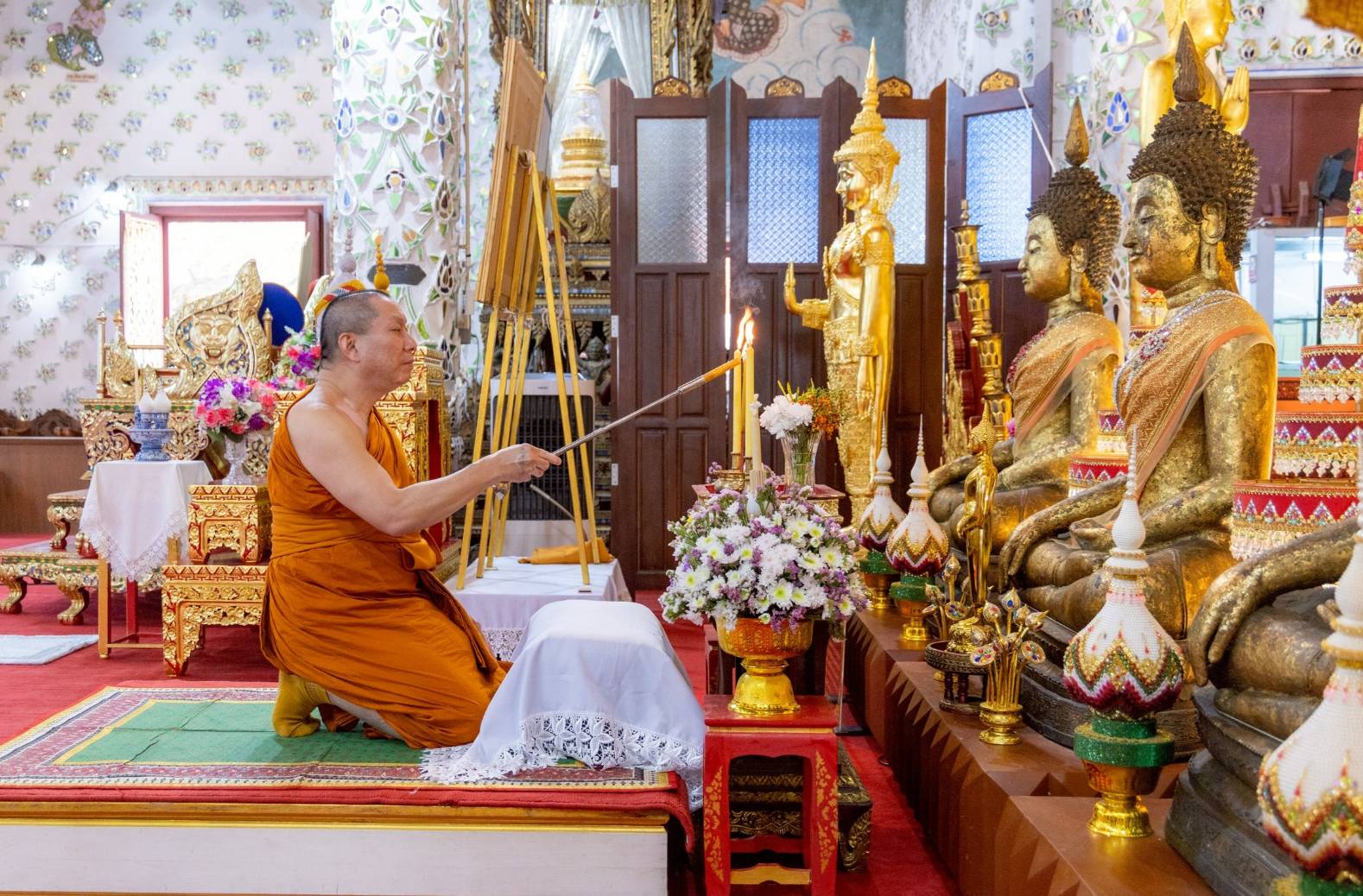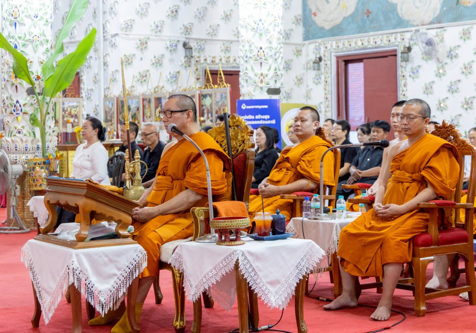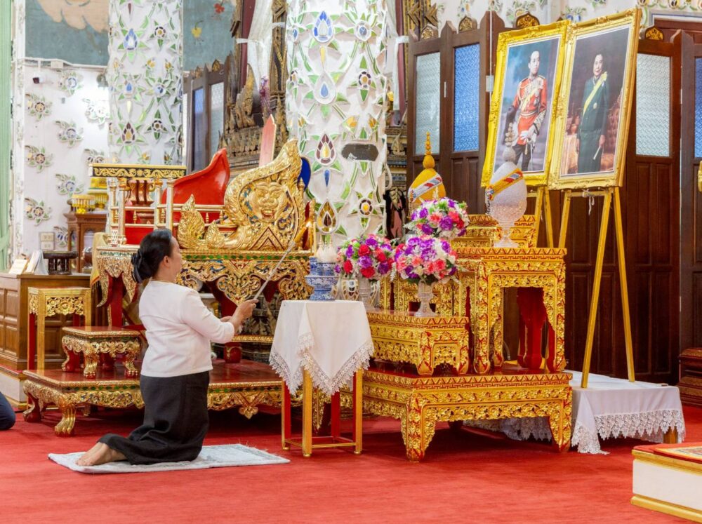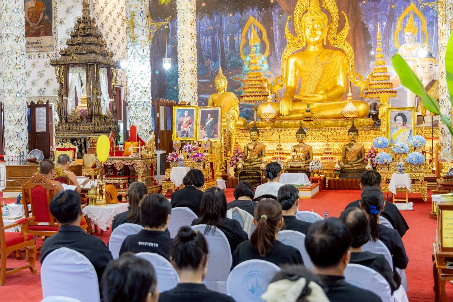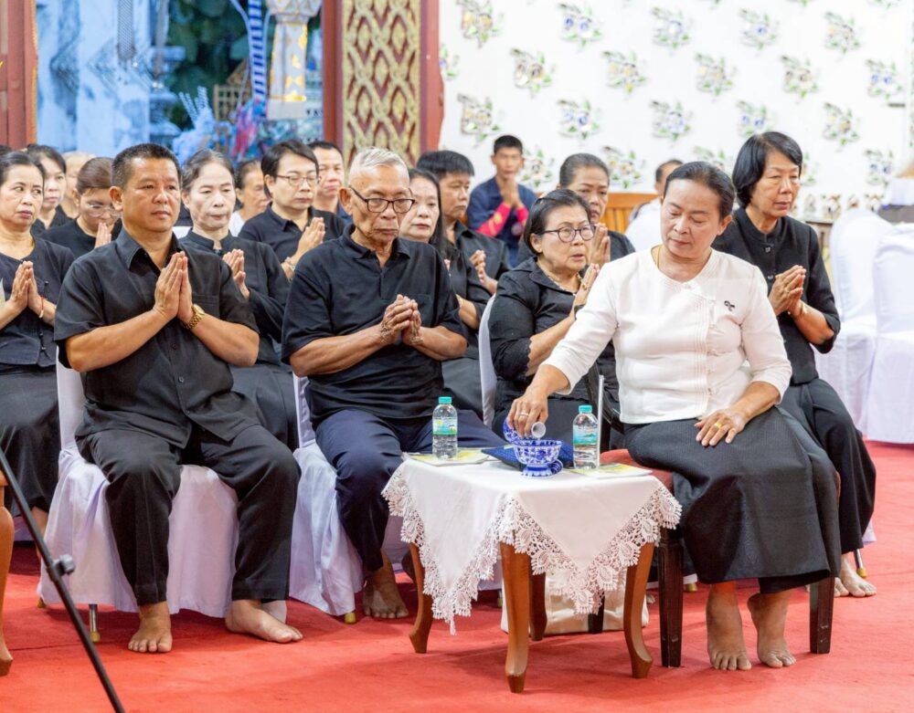 โดยมี นางนงนุช เขยเป็นสี ผู้ใหญ่บ้านหมู่ที่ 11 บ้านพระธาตุช่อแฮ เป็นประธานฝ่ายฆราวาส ทำพิธีจุดธูปเทียนเครื่องทองน้อยถวายสักการะเบื้องหน้าพระฉายาลักษณ์ทั้งสองพระองค์ หลังจากนั้น พระสงฆ์ได้เจริญพระพุทธมนต์และเจริญจิตตภาวนา สำรวมจิตอุทิศถวายเป็นพระราชกุศล โดยมีพระโกศัยเจติยารักษ์, ดร. ประธานสงฆ์ กล่าวคำอุทิศถวายพระราชกุศล ปิดท้ายพิธีอย่างสง่างาม ในการนี้มีพระภิกษุสงฆ์ เจ้าหน้าที่ศาสนการ และชุมชนคุณธรรมวัดพระธาตุช่อแฮ เข้าร่วมพิธีโดยพร้อมเพรียง