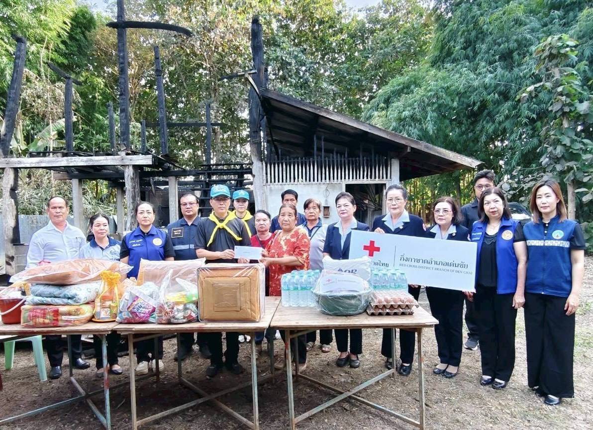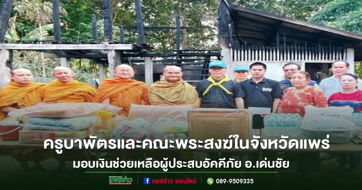 เมื่อวันอังคารที่ 25 พฤศจิกายน 2568 เวลา 16.00 น. คณะสงฆ์อำเภอเด่นชัย นำโดย พระครูสุธรรมกิตติวงศ์ เจ้าคณะอำเภอเด่นชัย/เจ้าอาวาสวัดพงป่าหวาย ร่วมกับ นายประจักร์ จินดาจำรูญ นายอำเภอเด่นชัย/นายกกิ่งกาชาดอำเภอเด่นชัย พร้อมหัวหน้าส่วนราชการ นายกเทศมนตรีตำบลปงป่าหวาย คณะกรรมการกิ่งกาชาด ปลัดอำเภอ กำนัน ผู้ใหญ่บ้าน และผู้ช่วยผู้ใหญ่บ้าน ลงพื้นที่ให้กำลังใจและช่วยเหลือ นายธีรพล ถือแก้ว ผู้ประสบอัคคีภัย