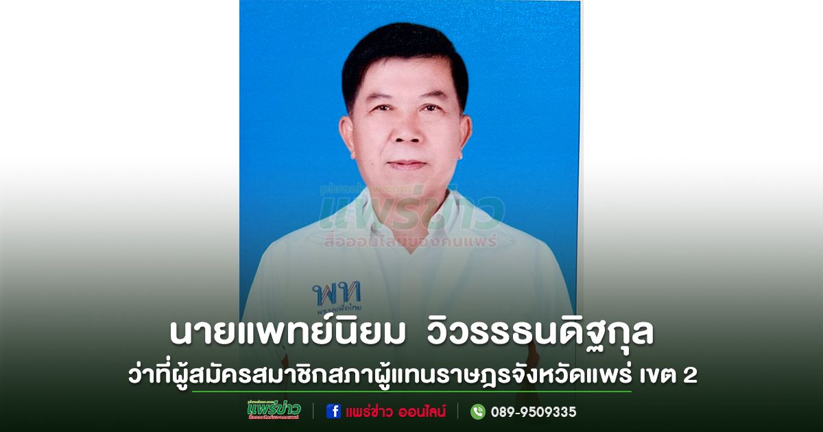 เพื่อให้การเลือกตั้งเป็นไปด้วยความบริสุทธิ์ ยุติธรรม และถูกต้องตามกฎหมายเลือกตั้งข้าพเจ้า นายแพทย์นิยม วิวรรธนดิฐกุล ว่าที่ผู้สมัครสมาชิกสภาผู้แทนราษฎรจังหวัดแพร่ เขต 2 ขอให้คำยืนยันว่า จะไม่กระทำการใดที่เป็นการฝ่าฝืนกฎหมายเลือกตั้งจะไม่จัดทำ เสนอให้ สัญญาว่าจะให้ หรือจัดเตรียมเพื่อให้ทรัพย์สินหรือผลประโยชน์ใดซึ่งอาจคำนวณเป็นเงินแก่บุคคลใด ชุมชน สมาคม มูลนิธิ วัด สถานศึกษา สถานสงเคราะห์ กลุ่มองค์กร หรือสถาบันใด ทั้งภาครัฐและเอกชนจะไม่เลี้ยง ไม่จัดเลี้ยง ไม่รับจะจัดเลี้ยง และไม่จัดให้มีมหรสพหรือการรื่นเริงใดและจะงดการเข้าร่วมหรือเกี่ยวข้องกับงานประเพณี งานบุญ งานรื่นเริง หรืองานกิจกรรมใดที่อาจเข้าข่ายฝ่าฝืนกฎหมายเลือกตั้งหากมีผู้ใดหรือกลุ่มใดจัดกิจกรรมดังกล่าวขึ้นขอความกรุณางดการระบุชื่อข้าพเจ้าเป็นเจ้าภาพหรือผู้ให้การสนับสนุนและให้ถือว่าข้าพเจ้าไม่มีส่วนเกี่ยวข้อง ไม่มีส่วนรู้เห็น และไม่ยินยอมต่อกิจกรรมนั้นข้อความทั้งหมดนี้มีผลตั้งแต่บัดนี้เป็นต้นไป
