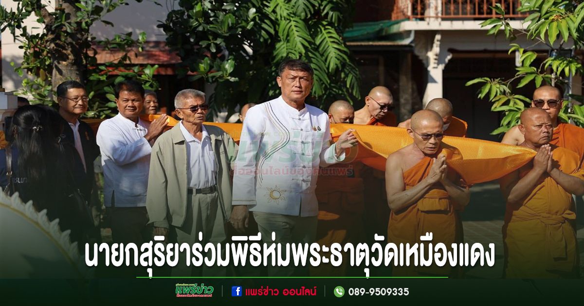วันจันทร์ที่ 5 มกราคม 2569 นายสุริยา อินต๊ะนอน นายกเทศมนตรีเมืองแพร่ พร้อมด้วยสมาชิกสภาเทศบาล ข้าราชการ ครู และเจ้าหน้าที่เทศบาลเมืองแพร่ ร่วมประกอบพิธีห่มพระธาตุ ณ วัดเหมืองแดง อำเภอเมืองแพร่ โดยมีการถวายผ้าและประกอบพิธีทางศาสนาอย่างสมเกียรติ เพื่อสืบสานประเพณีอันดีงามของท้องถิ่น และเป็นสิริมงคลแก่ประชาชนในพื้นที่
