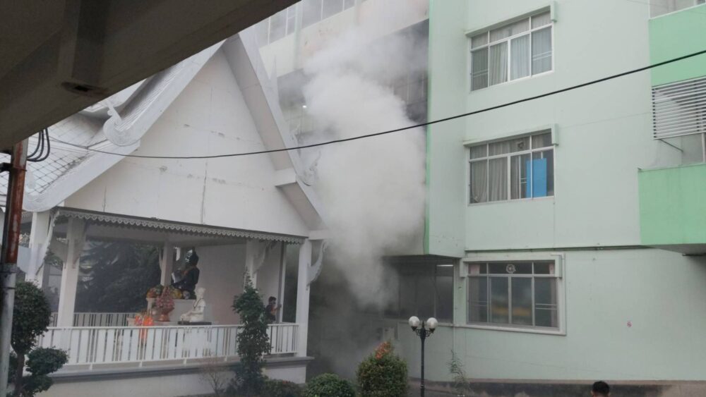 พบว่าไฟได้ไหม้ที่ตึกไมตรีประชา ชั้น 2 โรงพยาบาลแพร่ ซึ่งมีกลุ่มควันลอยขึ้นจำนวนมาก จากนั้นเจ้าหน้าที่ของโรงพยาบาลแพร่ หน่วยกู้ภัยแพร่ฯ และพลเมืองดี ร่วมเคลื่อนย้ายผู้ป่วยจากตึกไมตรีประชา ออกไปยังที่ปลอดภัย โดยมี แพทย์หญิงวิราวรรณ ศรีงามวงศ์ ผู้อำนวยการโรงพยาบาลแพร่ พร้อมเจ้าหน้าที่ของโรงพยาบาลแพร่ ให้เคลื่อนย้ายผู้ป่วยไปยังที่ปลอดภัย ซึ่งได้นำผู้ป่วยจากชั้น 3-4-5 ออกมาไปตามจุดต่างๆ อย่างฉุกละหุก