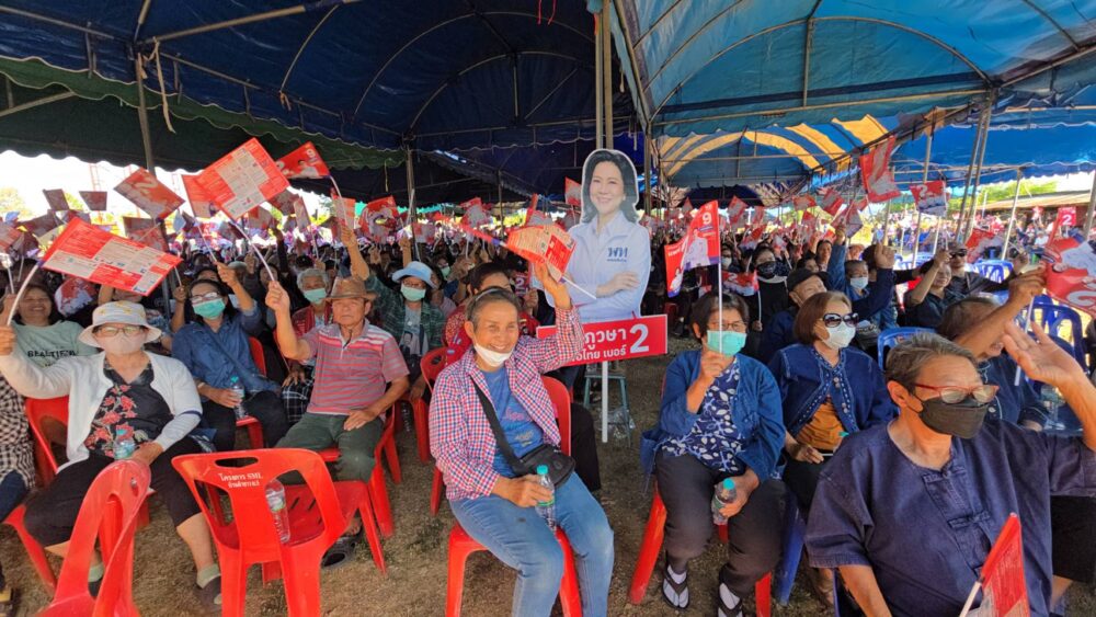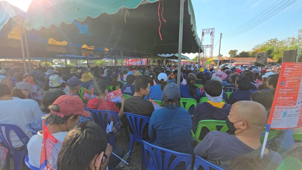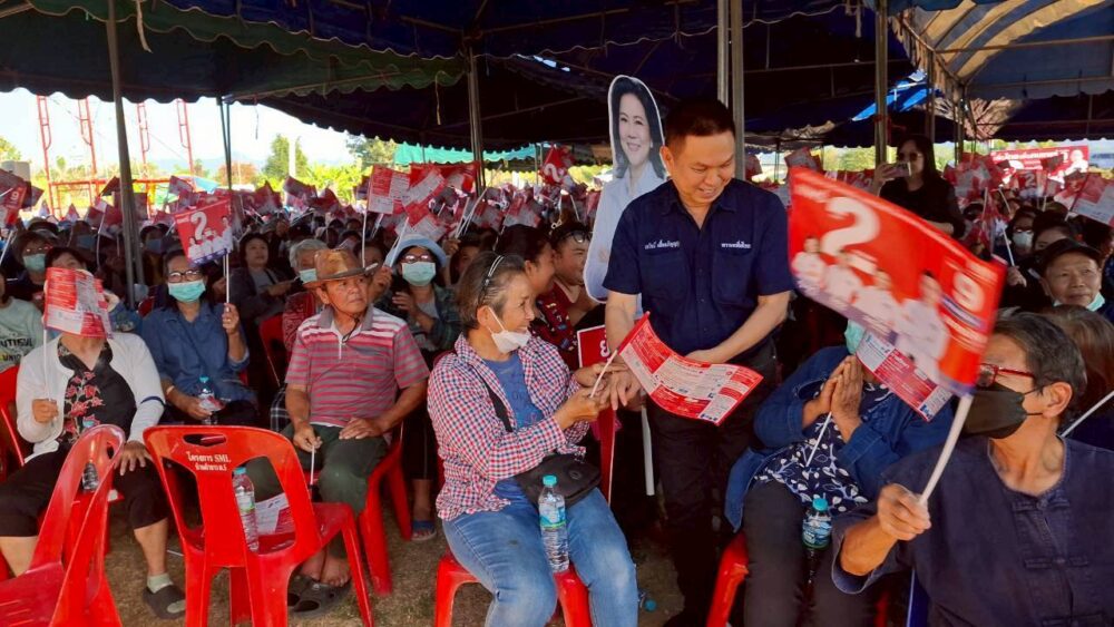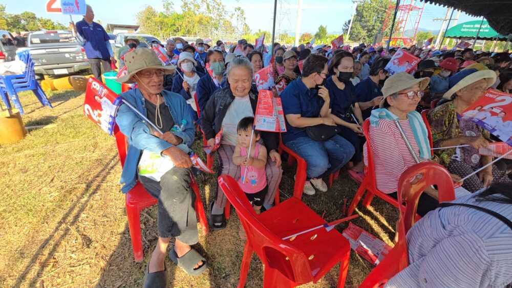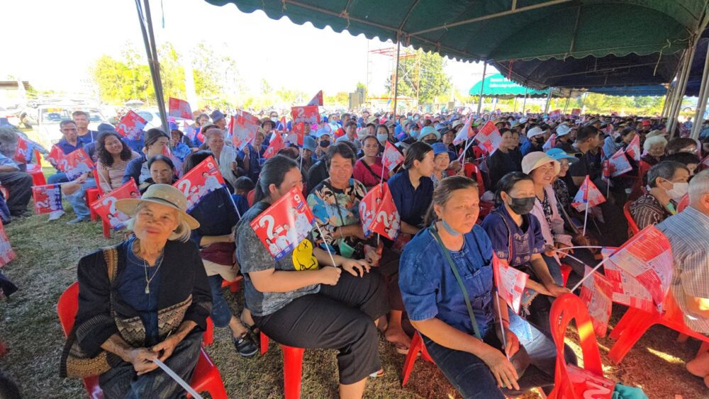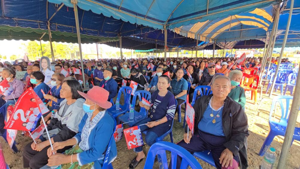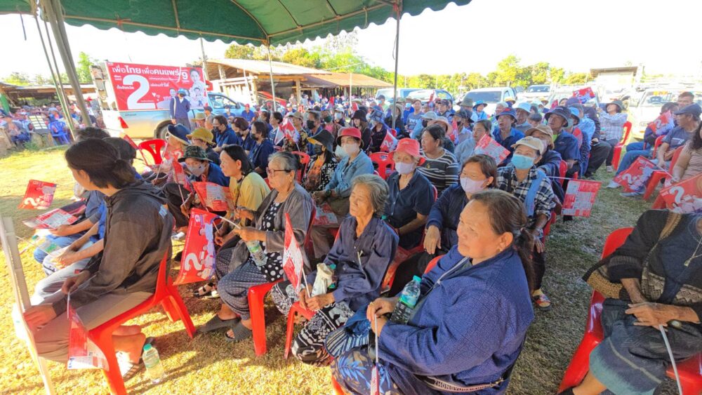 การปราศรัยครั้งนี้ พรรคเพื่อไทยได้นำเสนอนโยบายมุ่งแก้ไขปัญหาปากท้อง ยกระดับคุณภาพชีวิตประชาชน ภายใต้แนวคิด “คนไทยไร้จน” พร้อมชูนโยบายเด่น อาทิ นโยบาย 30 บาทรักษาทุกที่ รวมถึง “หวยเกษียณ” ที่เปลี่ยนเงินซื้อหวยมาเป็นเงินออมในอนาคต รวมถึงนโยบายเงิน 1 หมื่น สมัยนายกอุ้งอิ้ง ซึ่งได้รับเสียงชื่นชมและการตอบรับอย่างอบอุ่นจากชาวบ้านที่เห็นว่านโยบายของพรรคเพื่อไทยเป็นนโยบาย ที่ทำเพื่อประชาชนอย่างแท้จริง