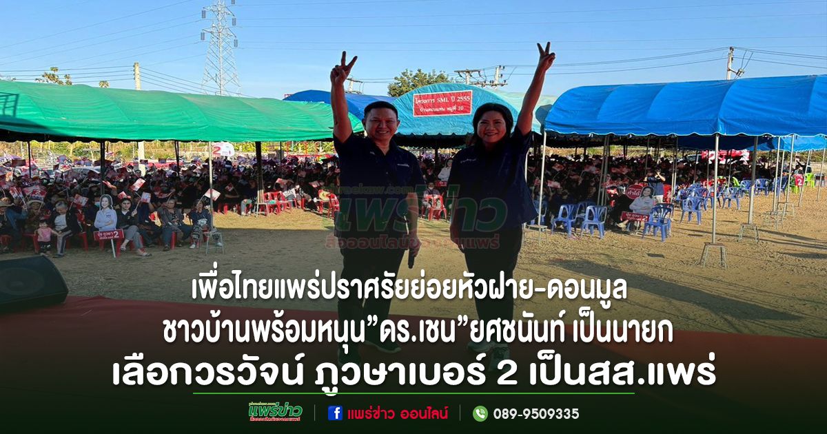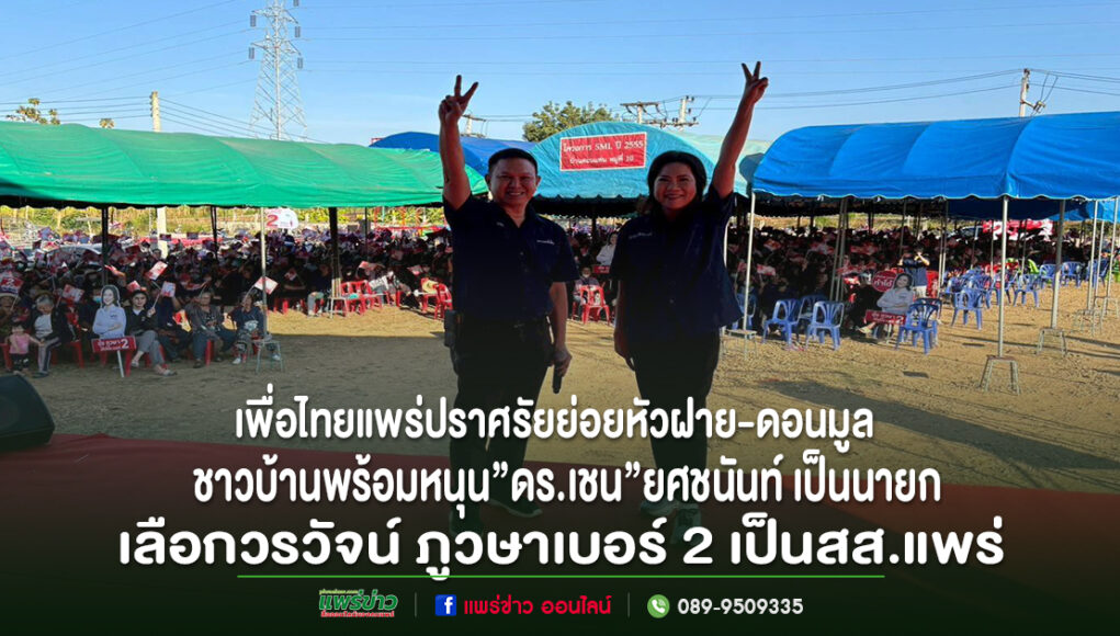 เมื่อเวลา 15.30 น. วันที่ 18 มกราคม 2569 นายวรวัจน์ เอื้ออภิญญกุล ผู้สมัคร สส.แพร่ เบอร์ 2 เขต 3 และ นางภูวษา สินธุวงศ์ (ยุ้ย) ผู้สมัคร สส.แพร่ เขต 1 เบอร์ 2 พรรคเพื่อไทย จัดเวทีปราศรัยย่อย บริเวณโรงงานแปรรูปไม้ หมู่ 3 ต.ดอนมูล อ.สูงเม่น เอื้อเฟื้อสถานที่ โดยมีชาวบ้านในพื้น ต.ดอนมูล ต.หัวฝาย และ ใกล้เคียง ให้ความสนใจเข้าร่วมรับฟังนับพันคน