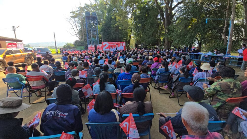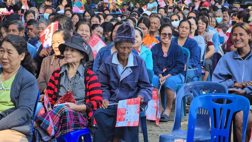 การปราศรัยครั้งนี้ พรรคเพื่อไทยได้นำเสนอนโยบายมุ่งแก้ไขปัญหาปากท้อง ยกระดับคุณภาพชีวิตประชาชน ภายใต้แนวคิด “คนไทยไร้จน” พร้อมชูนโยบายเด่น อาทิ นโยบาย 30 บาทรักษาทุกที่ รวมถึง “หวยเกษียณ” ที่เปลี่ยนเงินซื้อหวยมาเป็นเงินออมในอนาคต รวมถึงนโยบายเงิน 1 หมื่น สมัยนายกอุ้งอิ้ง ซึ่งได้รับเสียงชื่นชมและการตอบรับอย่างอบอุ่นจากชาวบ้านที่เห็นว่านโยบายของพรรคเพื่อไทยเป็นนโยบาย ที่ทำเพื่อประชาชนอย่างแท้จริง