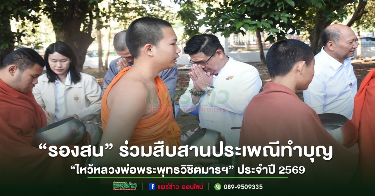 เมื่อวันที่ 21 มกราคม 2569 นายสุริยา อินต๊ะนอน นายกเทศมนตรีเมืองแพร่ ได้มอบหมายให้ นายสน ลือวัฒนานนท์ รองนายกเทศมนตรีเมืองแพร่ นำคณะพนักงานเทศบาล คณะครู และบุคลากรในสังกัดสำนักงานเทศบาลเมืองแพร่ เข้าร่วมงานประเพณีทำบุญ“ไหว้หลวงพ่อพระพุทธวิชิตมาร ประทานสันติสุขสวัสดี ชินสีห์ธรรมบพิตร” ประจำปี 2569
