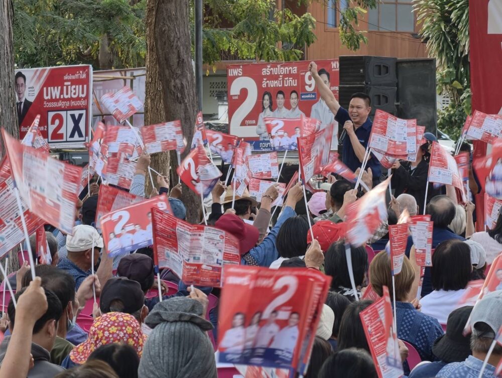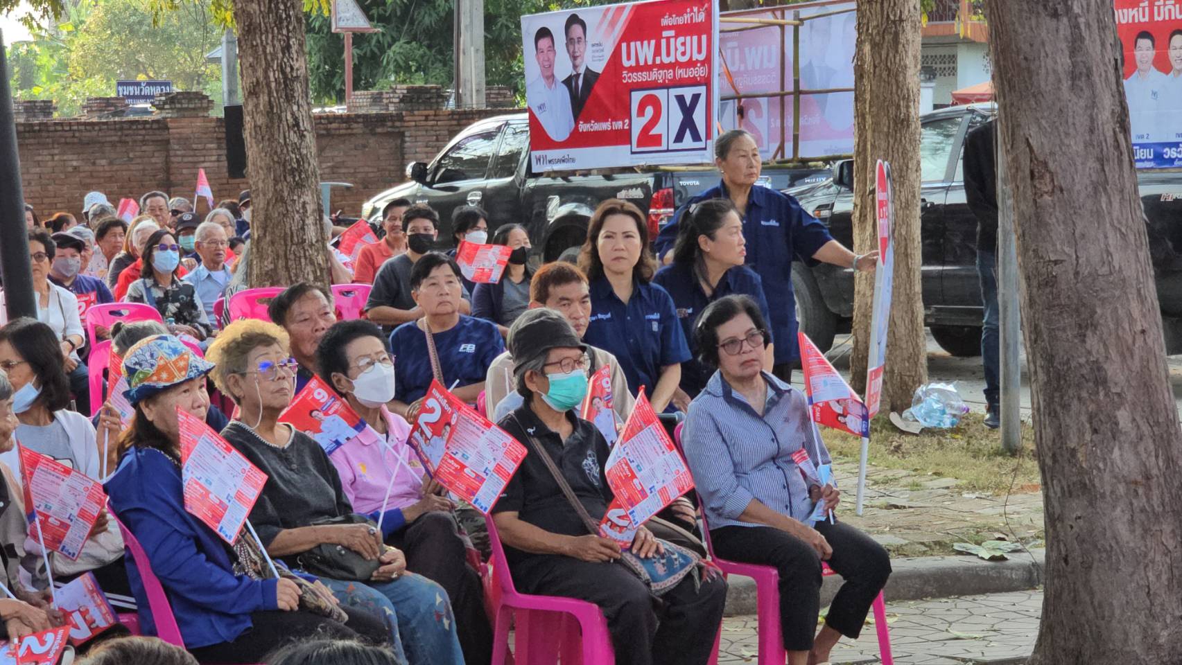 ผู้สมัคร สส. จังหวัดแพร่ทั้ง 3 เขตเลือกตั้ง ประกอบด้วย นางภูวษา สินธุวงศ์ เขต 1 , นายแพทย์ นิยม วิวรรธนดิฐกุล เขต 2 และ นายวรวัจน์ เอื้ออภิญญกุล เขต 3 เบอร์ 2 ทั้ง 3 เขต เปิดเวทีปราศรัย ณ สนามหลวง (สวนสุขภาพเฉลิมพระเกียรติ ร.9) พื้นที่ตำบลในเวียง อำเภอเมืองแพร่ ชี้แจงนโยบายของพรรค พร้อมขอคะแนนเสียงจากพี่น้องประชาชน โดยบรรยากาศเป็นไปอย่างคึกคัก มีประชาชนมาร่วมฟังการปราศรัยจำนวนมาก