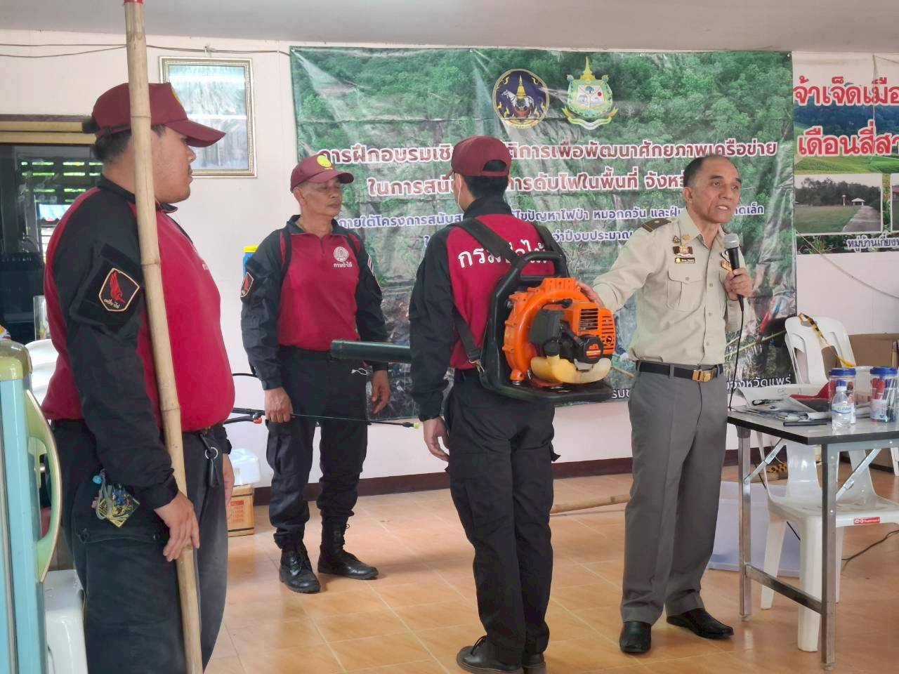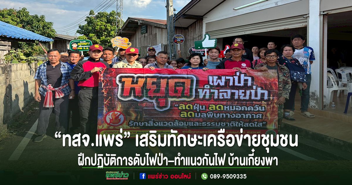 วันที่ 22 มค.69 สำนักงานทรัพยากรธรรมชาติและสิ่งแวดล้อมจังหวัดแพร่ นำโดย นายบทมากร ศรีสุวรรณ ผู้อำนวยการสำนักงานทรัพยากรธรรมชาติและสิ่งแวดล้อมจังหวัดแพร่ จัดอบรมเชิงปฏิบัติการเพื่อพัฒนาศักยภาพเครือข่ายในการสนับสนุนการดับไฟในพื้นที่บ้านเกี๋ยงพา ตำบลต้าผามอก อำเภอลอง จังหวัดแพร่