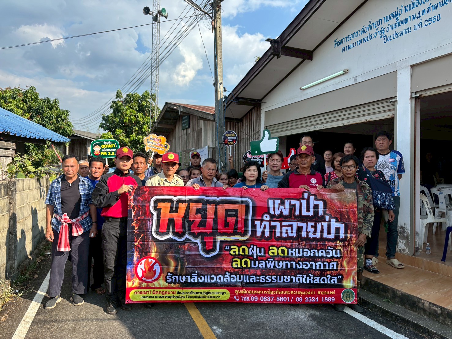 นอกจากนี้ ยังได้ให้ความรู้ด้านเทคนิควิชาการและการใช้เทคโนโลยีที่เหมาะสม เพื่อปรับเปลี่ยนพฤติกรรม ลดการเผาในพื้นที่ซึ่งเป็นสาเหตุสำคัญของการเกิดไฟป่าและหมอกควัน พร้อมทั้งจัดการฝึกปฏิบัติการดับไฟป่าและการทำแนวกันไฟ เพื่อเตรียมความพร้อมให้ผู้เข้าร่วมอบรมสามารถปฏิบัติงานร่วมกับเจ้าหน้าที่ได้อย่างมีประสิทธิภาพในช่วงฤดูไฟป่าที่กำลังจะมาถึง
