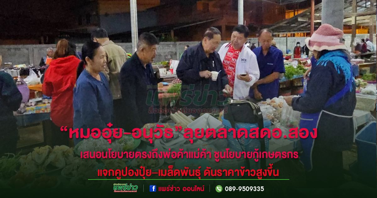 “หมออุ๋ย” นายแพทย์นิยม วิวรรธนดิฐกุล ผู้สมัครสมาชิกสภาผู้แทนราษฎรจังหวัดแพร่ เขต 2 หมายเลข 2 พรรคเพื่อไทย เดินหน้าลงพื้นที่หาเสียงอย่างต่อเนื่อง ล่าสุดตระเวนพบพ่อค้าแม่ค้าและประชาชนที่มาจับจ่ายใช้สอยภายในตลาดสดบ้านทุ่งน้าว ตลาดบ้านคุ้ม และตลาดศรีมูลเรือง เพื่อขอคะแนนเสียงและนำเสนอนโยบายสำคัญของพรรคโดยตรงถึงประชาชน