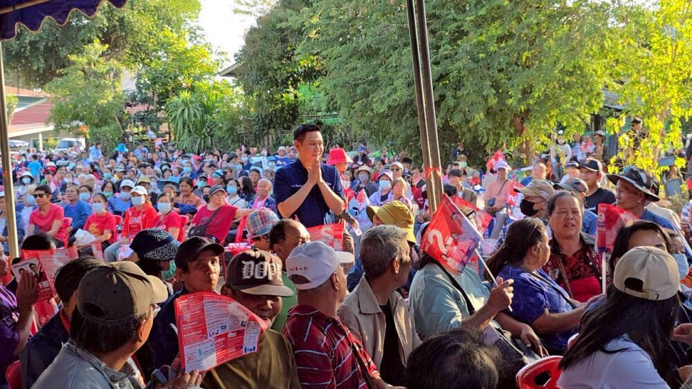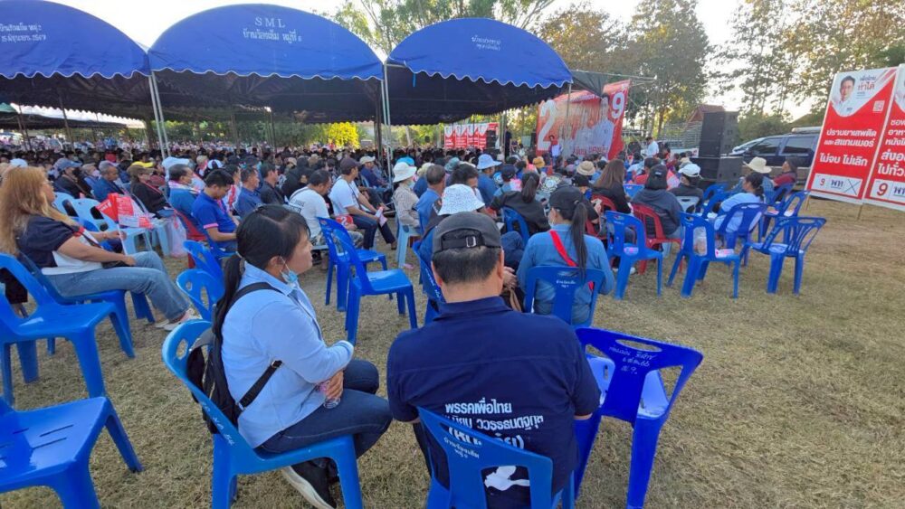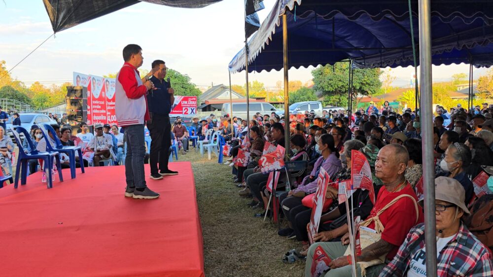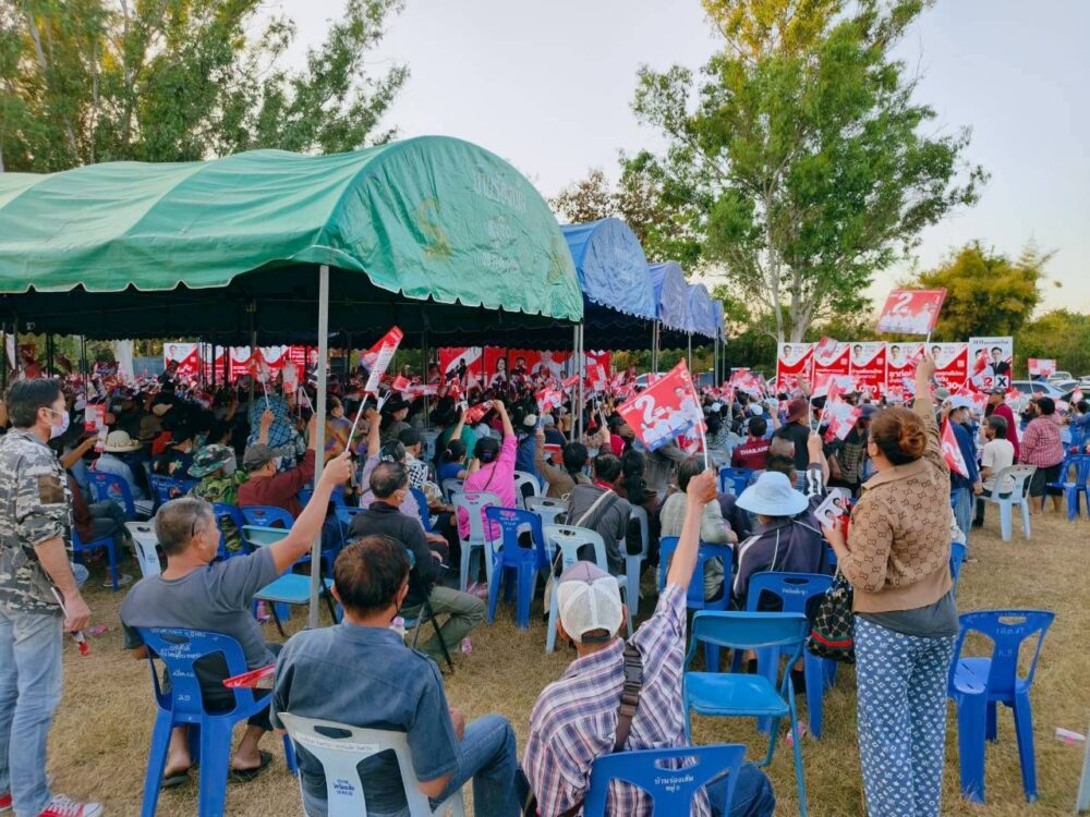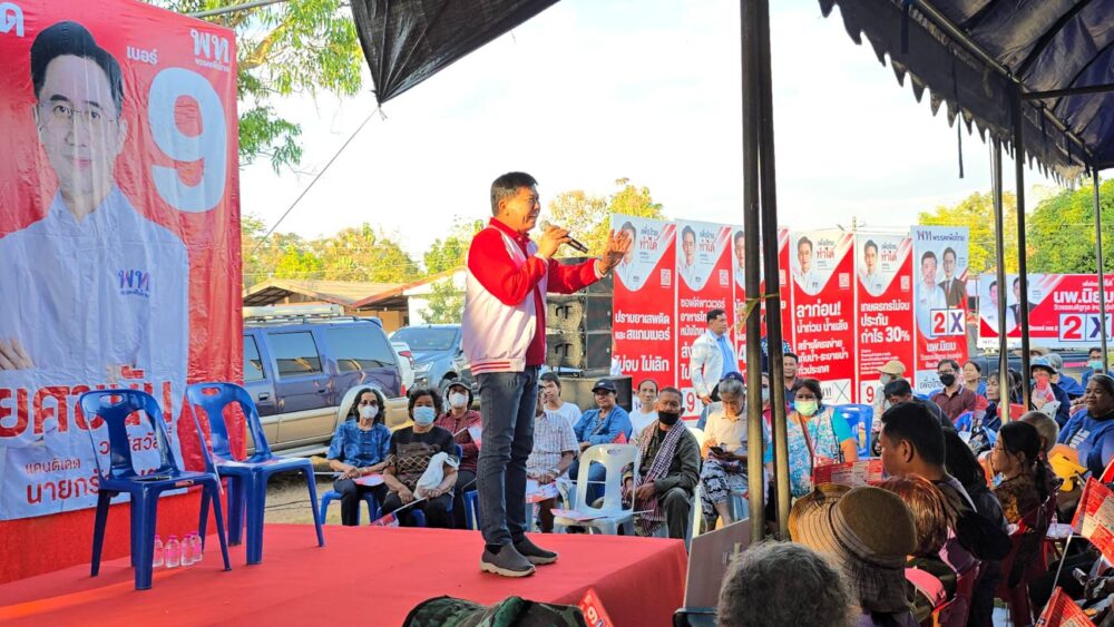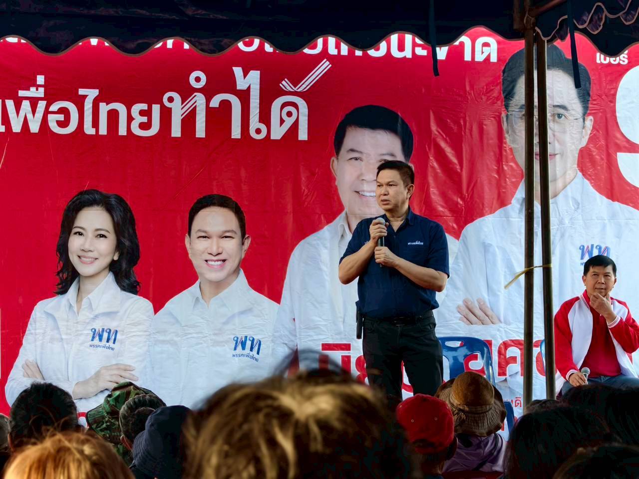 บรรยากาศเวทีปราศรัยพรรคเพื่อไทย ที่ลานตลาดนัดคลองถม ต.ร้องเข็ม อ.ร้องกวาง จ.แพร่ เป็นไปอย่างคึกคัก มีประชาชนมาร่วมรับฟังปราศรัยกันจนเต็มพื้นที่ นพ.นิยม วิวรรธนดิฐกุล หรือ หมออุ๋ย และ นายวรวัจน์ เอื้ออภิญญกุล ผู้สมัคร สส.เบอร์ 2 พรรคเพื่อไทย ขึ้นเวทีชี้แจงนโยบาย และร่วมรับฟังเสียงสะท้อนจากประชาชนในพื้นที่