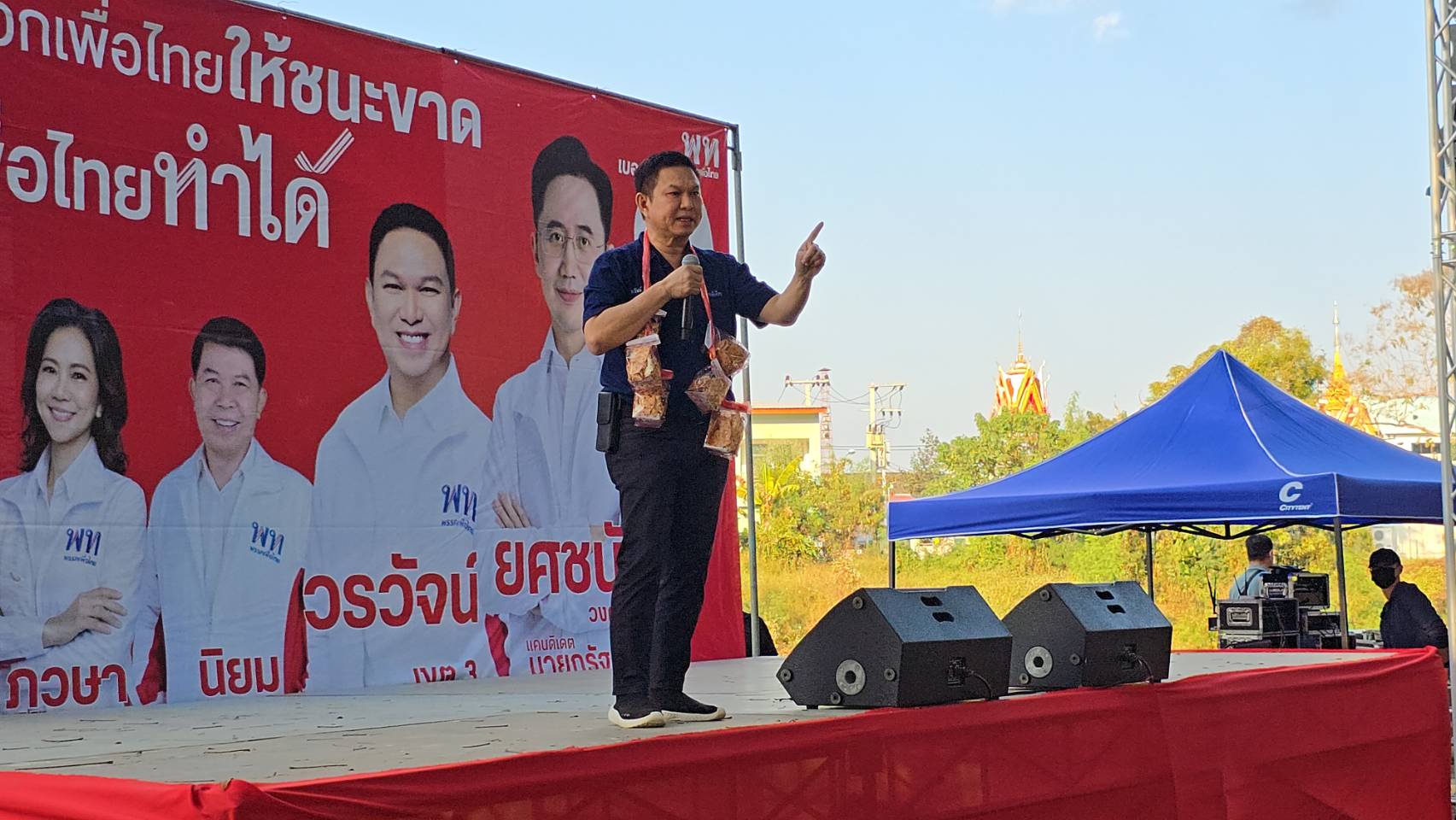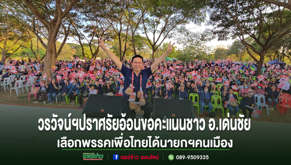 เมื่อเย็นวันที่ 2 ก.พ.69 เวลา16.30 น. ที่ลานฝายแม่พวก อ.เด่นชัย จ.แพร่ นายวรวัจน์ เอื้ออภิญญกุล ผู้สมัคร สส. จังหวัดแพร่ เขต 3 เบอร์ 2 พรรคเพื่อไทย ได้เปิดเวทีปราศรัยนโยบายพรรคเพื่อไทย โดยบรรยากาศเป็นไปอย่างคึกคัก มีประชาชนชาว อ.เด่นชัย และแฟนคลับพรรคเพื่อไทย มาร่วมฟังการปราศรัยจำนวนกว่า 3 พันคน