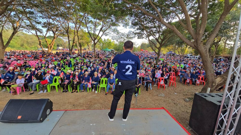 ในการปราศรัยครั้งนี้ นายวรวัจน์ฯ กล่าวว่า พรรคเพื่อไทยจะเดินหน้าประกาศสงครามกับความยากจน ผ่านนโยบาย “คนไทยไร้จน” เพื่อช่วยเหลือผู้ที่มีรายได้น้อย ไม่ว่าจะเป็นกลุ่มเปราะบาง ผู้สูงอายุ คนตกงาน หรือคนธรรมดาทั่วไป ที่มีรายได้ไม่ถึง 3,000 บาทต่อเดือน หรือ มีรายได้ไม่ถึง 100 บาทต่อวัน รัฐจะเติมเงินเข้าไปทันทีให้ครบ 3,000 บาทต่อเดือน เพื่อให้ก้าวข้ามเส้นความยากจน คืนศักดิ์ศรีความเป็นมนุษย์ และเข้าถึงโอกาสทางเศรษฐกิจ