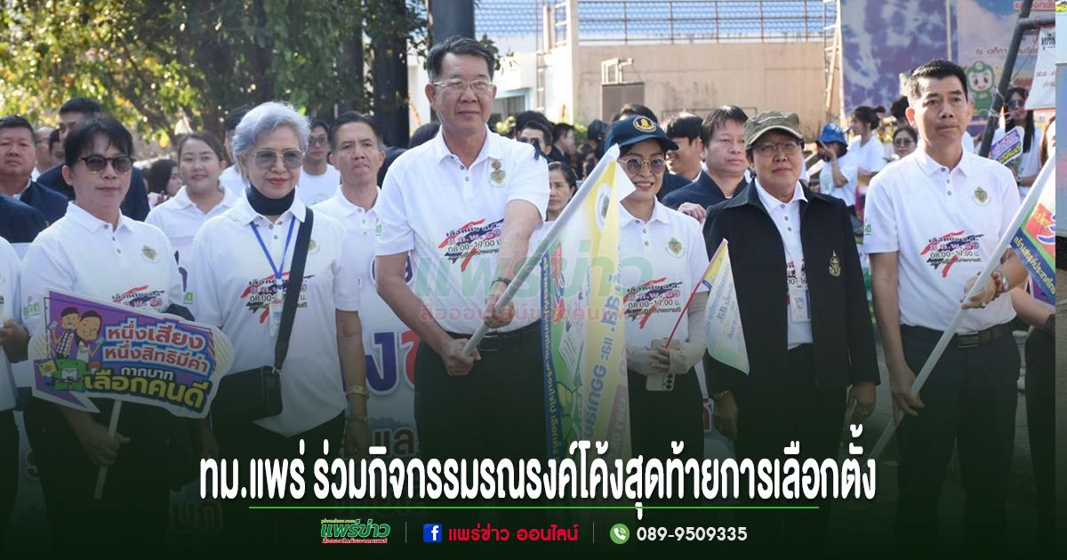 เทศบาลเมืองแพร่โดยนายสุริยา อินต๊ะนอน นายกเทศมนตรีเมืองแพร่ มอบหมายให้นางสาวสุพัตรา มาดหมาย รองปลัดเทศบาล พร้อมด้วยหัวหน้าส่วนราชการ พนักงานเทศบาล และพนักงานจ้าง ร่วมกิจกรรมดังกล่าว เพื่อเชิญชวนประชาชนออกไปใช้สิทธิเลือกตั้งอย่างพร้อมเพรียงกัน ตามระบอบประชาธิปไตย
