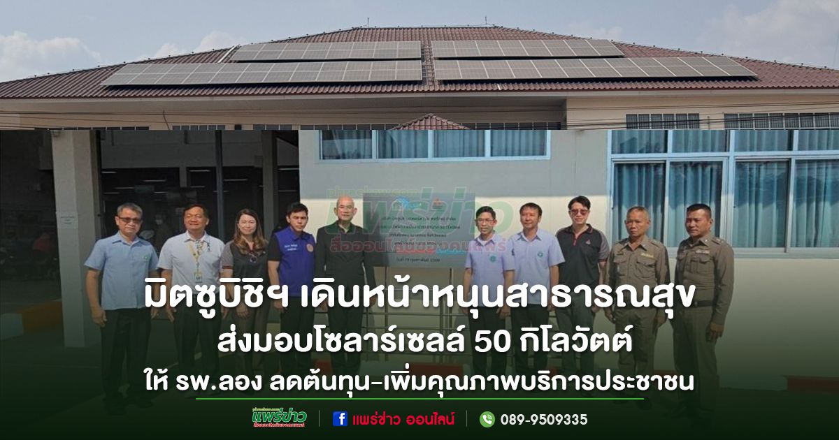 เมื่อเวลา 09.30 น. วันที่ 19 กุมภาพันธ์ 2569 ณ โรงพยาบาลลอง อำเภอลอง จังหวัดแพร่ บริษัท บริษัท มิตซูบิชิ มอเตอร์ส (ประเทศไทย) จำกัด จัดพิธีส่งมอบระบบผลิตไฟฟ้าพลังงานแสงอาทิตย์ (โซลาร์เซลล์) ขนาดกำลังการผลิต 50 กิโลวัตต์ ภายใต้โครงการ “Solar for Lives : พลังงานแสงอาทิตย์ เพื่อชีวิตที่ดีกว่า” เพื่อสนับสนุนการใช้พลังงานสะอาดในหน่วยบริการสาธารณสุข ลดภาระค่าใช้จ่าย และยกระดับคุณภาพการรักษาพยาบาล