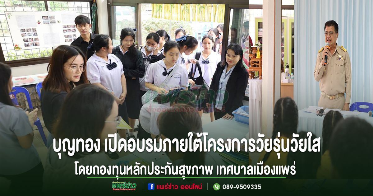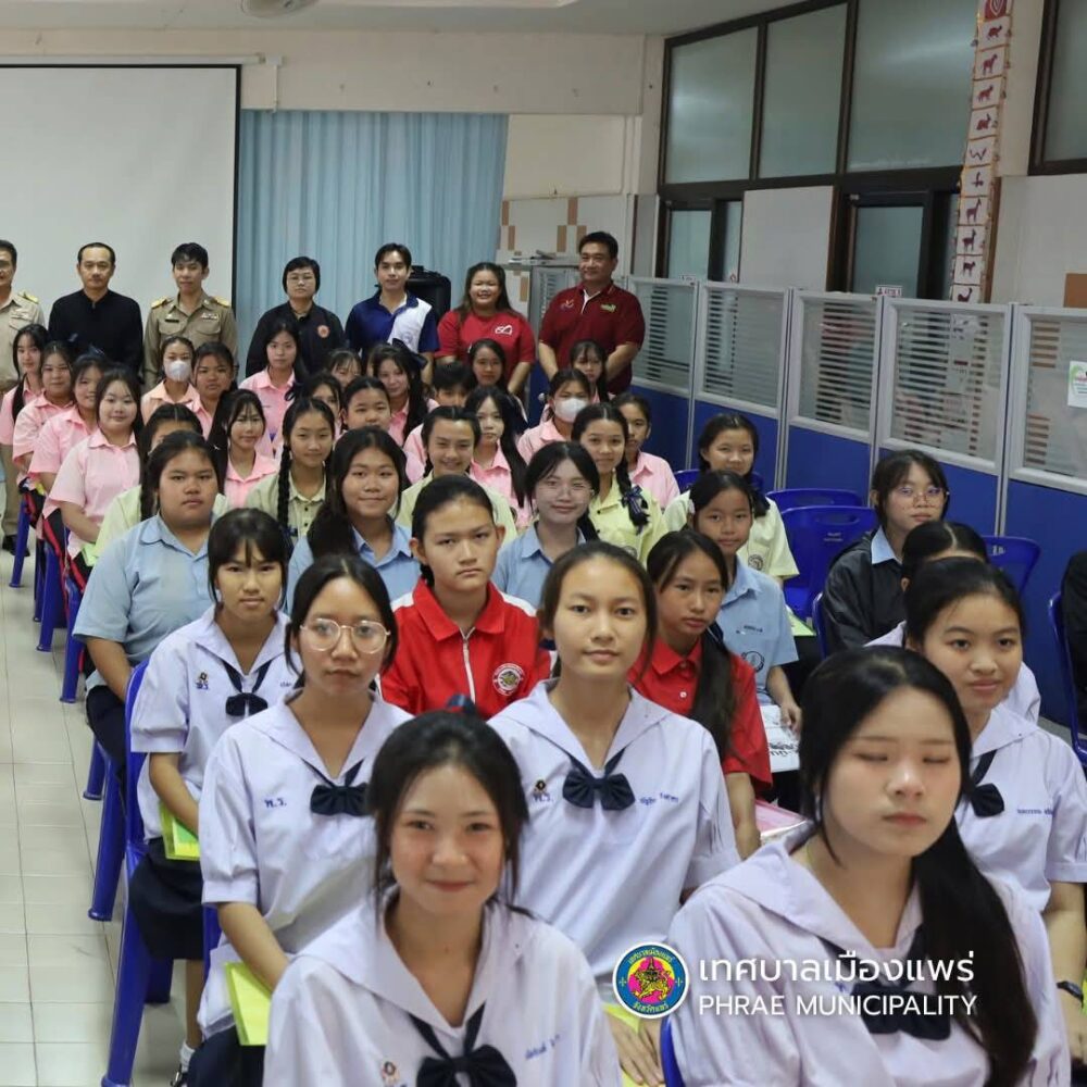 เมื่อวันที่ 23 กุมภาพันธ์ 2569 นายสุริยา อินต๊ะนอน นายกเทศมนตรีเมืองแพร่ มอบหมายให้นายบุญทอง ปัญญาสว่างจิตร รองนายกเทศมนตรีเมืองแพร่ เป็นประธานเปิดกิจกรรมอบรมภายใต้โครงการวัยรุ่นวัยใส ใส่ใจสุขภาพ โดยกองทุนหลักประกันสุขภาพ เทศบาลเมืองแพร่ โดยมีวัตถุประสงค์เพื่อให้นักเรียนมีความรู้ ความเข้าใจ และทักษะชีวิตเกี่ยวกับอนามัยเจริญพันธุ์ ป้องกันการตั้งครรภ์ก่อนวัยอันควร และภาวะโภชนาการที่เหมาะสมในวัยรุ่น แกนนำสามารถประชาสัมพันธ์ความรู้ด้านสุขภาพแก่บุคคลอื่นได้อย่างเหมาะสมและถูกต้อง เพื่อสร้างเครือข่ายนักเรียนแกนนำด้านสุขภาพในการเฝ้าระวัง ติดตามภัยสุขภาพในโรงเรียน