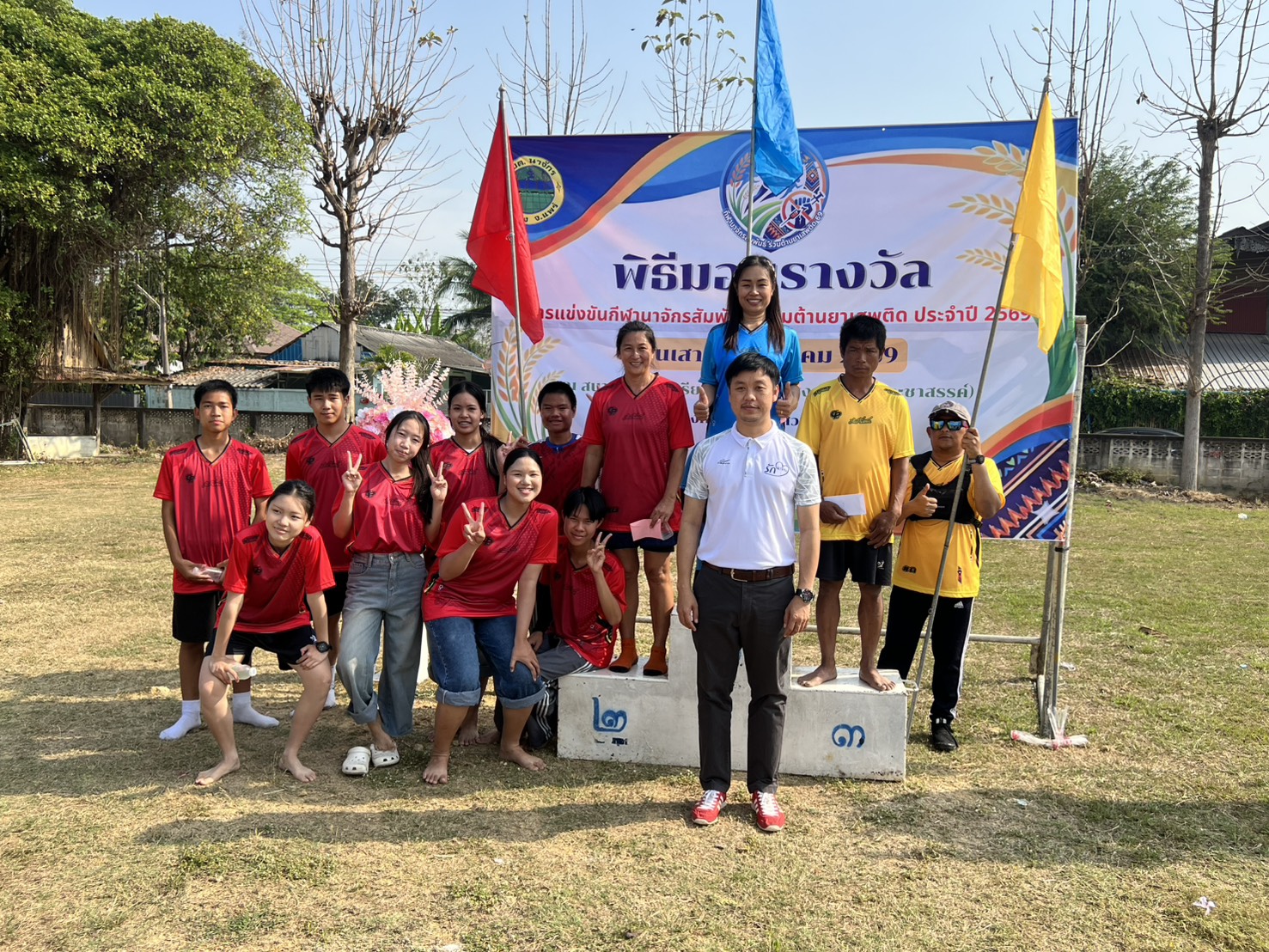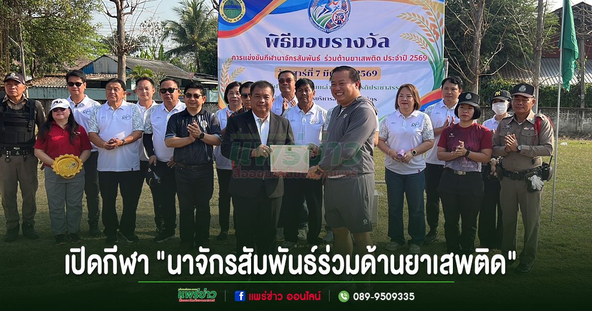 เมื่อเวลา 09.00 น. วันที่ 7 มี.ค.69 ที่สนามกีฬา รร.บ้านเหล่า ต.นาจักร อ.เมืองแพร่ จ.แพร่ นายนิกร ยะกะจาย นายอำเภอเมืองแพร่ เป็นประธานเปิดการแข่งขัน นาจักรสัมพันธ์ร่วมต้านยาเสพติด ประจำปี 2569 โดยมี นายสุนนท์ จิตใจ นายก อบต.นาจักร ในนามคณะกรรมการอำนวยการแข่งขัน กล่าวรายงานวัตถุประสงค์ในการแข่งขัน ท่านกลางแขกผู้มีเกียรติ คณะ สภา อบต.นาจักร ฝ่ายปกครอง ต.นาจักร ตร.สภ.เมืองแพร่ และชาว ต.นาจักร เข้าร่วมพิธีเปิดอย่างคับคั่ง
