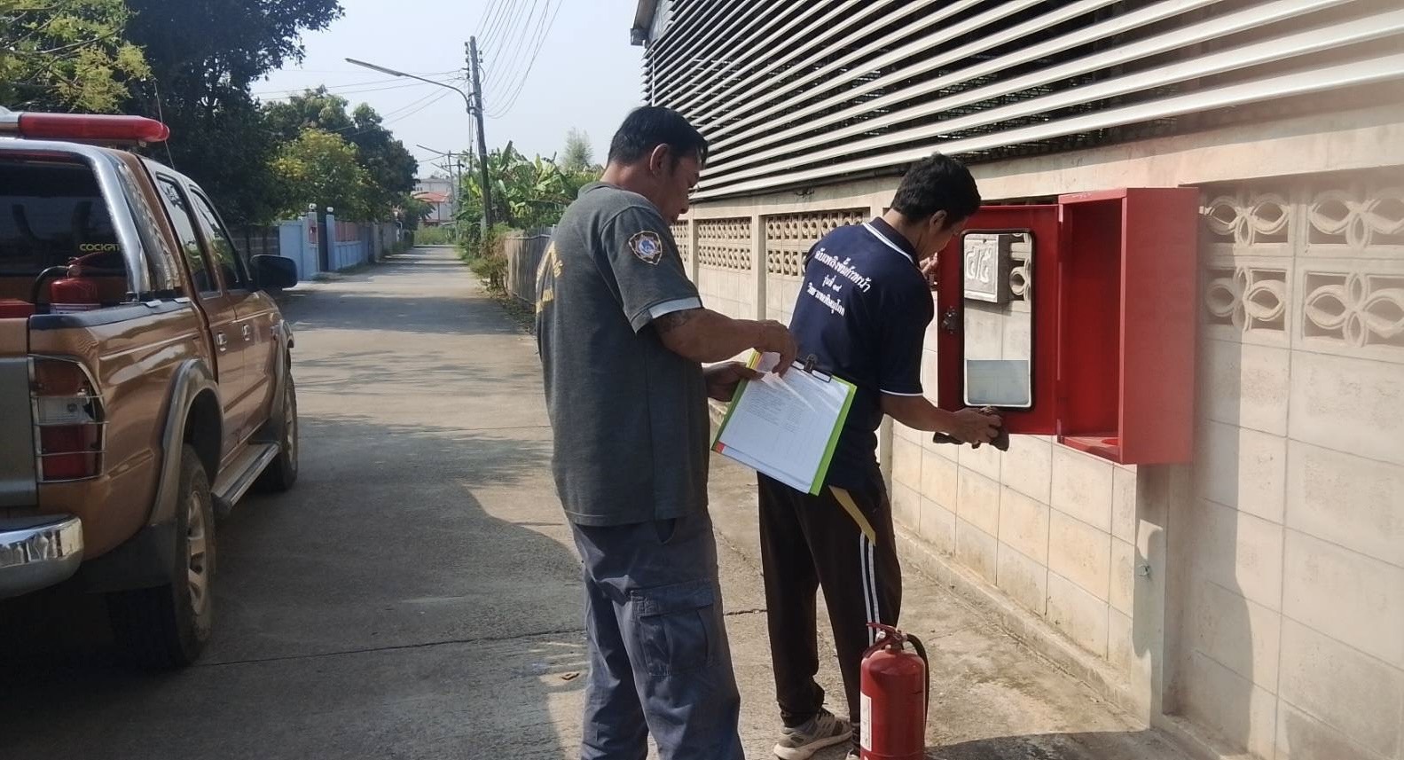 การลงพื้นที่ในครั้งนี้ เจ้าหน้าที่ได้ตรวจสอบสภาพความพร้อมใช้งานของถังดับเพลิง การติดตั้งในจุดที่เหมาะสม รวมถึงให้คำแนะนำแก่ประชาชนเกี่ยวกับการใช้งานถังดับเพลิงอย่างถูกวิธี เพื่อให้สามารถรับมือกับเหตุการณ์ฉุกเฉินได้อย่างทันท่วงที