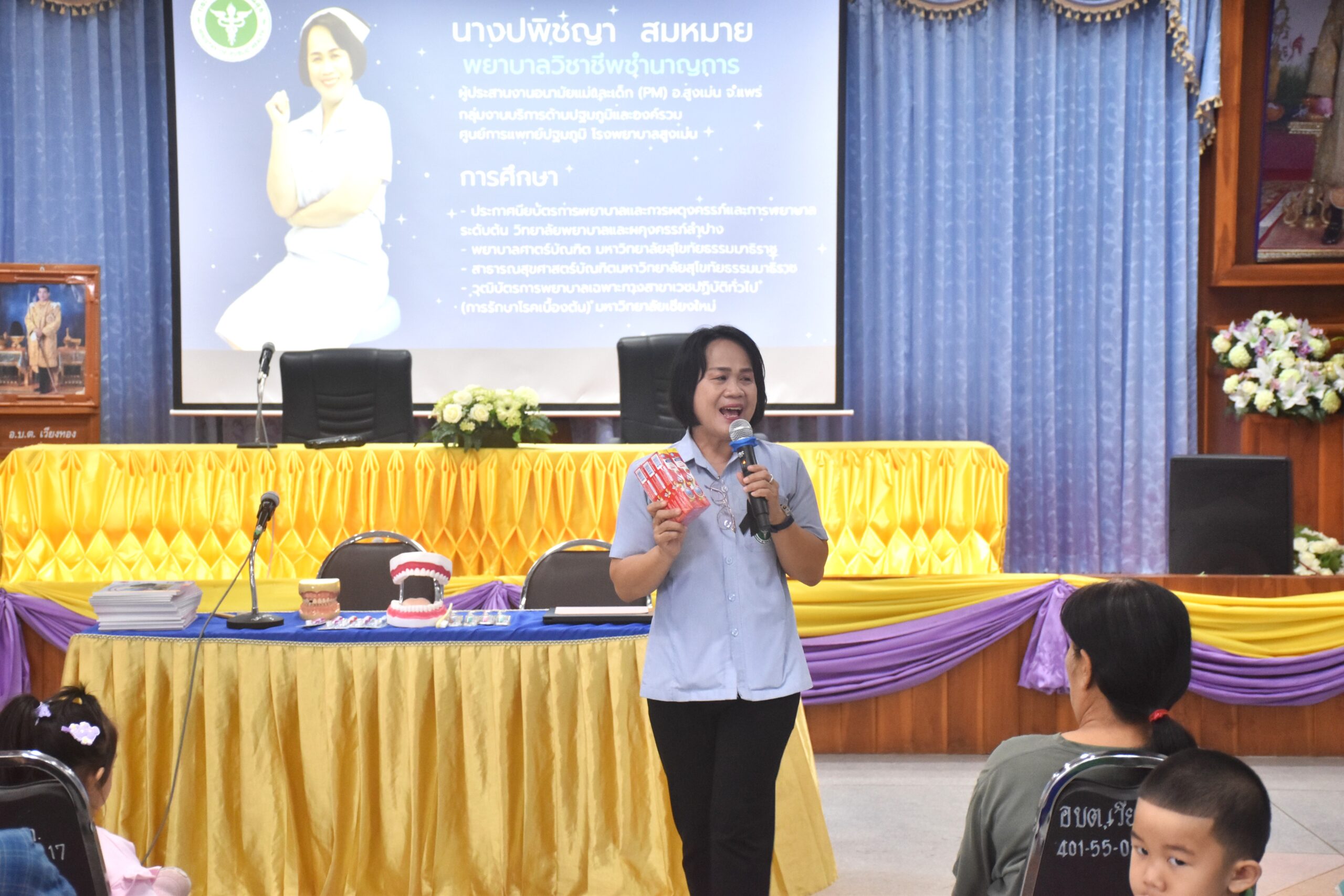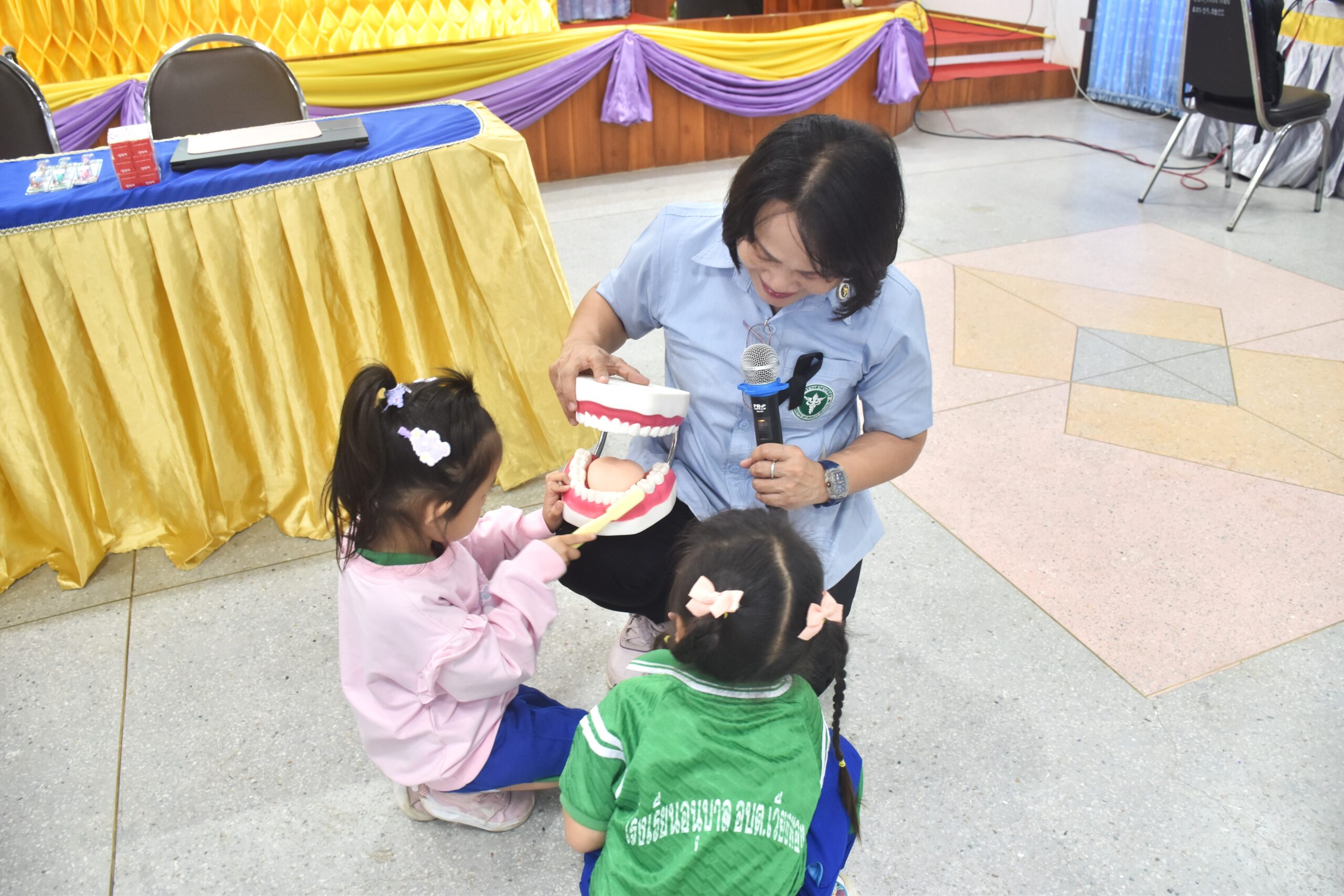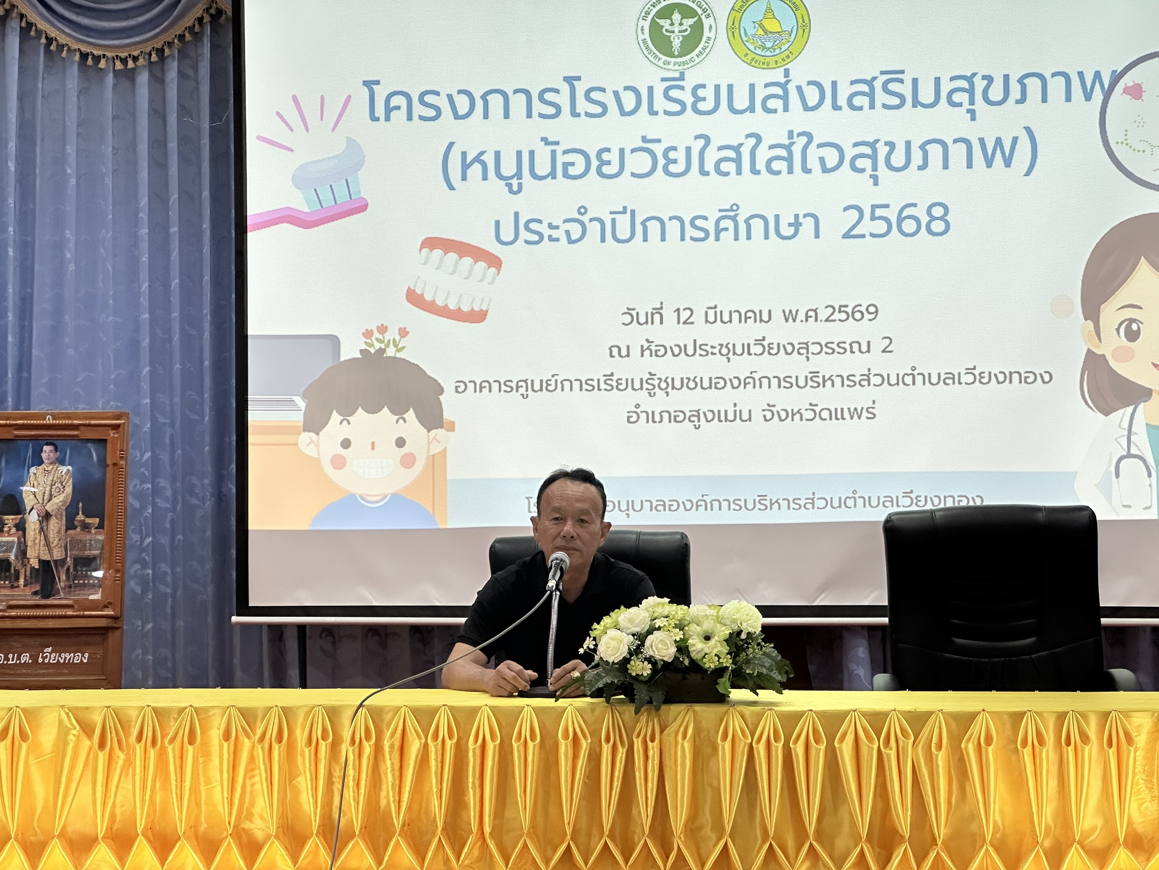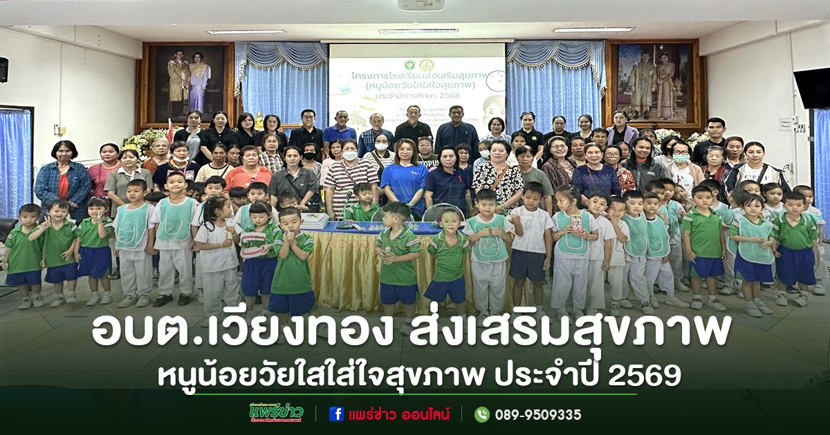 วันที่ 12 มีนาคม 2569 นายเสรี เวียงนาค นายกองค์การบริหารส่วนตําบลเวียงทอง พร้อมด้วย ผู้บริหาร , นายสมยศ ยอดสอน รองปลัดฯ รักษาราชการแทนปลัด อบต.เวียงทอง , นายธีระวัฒน์ นามสุข ผู้อำนวยการโรงเรียนอนุบาล อบต.เวียงทอง , คณะครู , พนักงาน อบต.เวียงทอง และนักเรียนโรงเรียนอนุบาลฯ ดำเนินโครงการโรงเรียนส่งเสริมสุขภาพ (หนูน้อยวัยใสใส่ใจสุขภาพ ฟันสวย) ของโรงเรียนอนุบาล และศูนย์พัฒนาเด็กเล็ก องค์การบริหารส่วนตำบลเวียงทอง เพื่อให้เด็กนักเรียนได้เรียนรู้ด้านสุขภาพฟัน และสุขภาพช่องปาก โดยได้รับเกียรติวิทยากรผู้เชี่ยวชาญด้านทันตกรรมมาให้ความรู้ สาธิต และฝึกปฏิบัติการแปรงฟันที่ถูกวิธี เพื่อให้นักเรียนเกิดความรู้ ความเข้าใจ และสามารถนำไปปฏิบัติในชีวิตประจำวันได้อย่างถูกต้อง ณ องค์การบริหารส่วนตำบลเวียงทอง อำเภอสูงเม่น จังหวัดแพร่