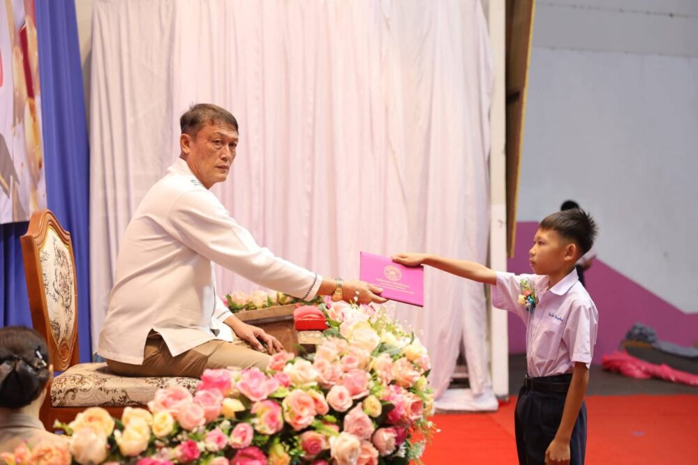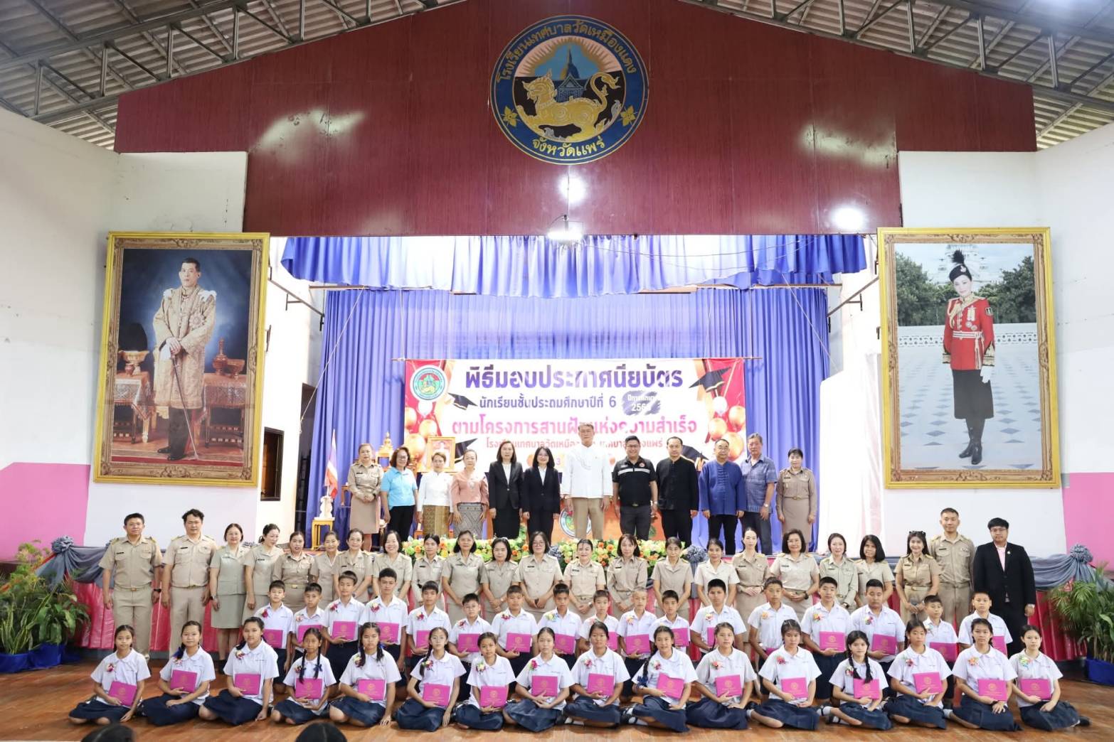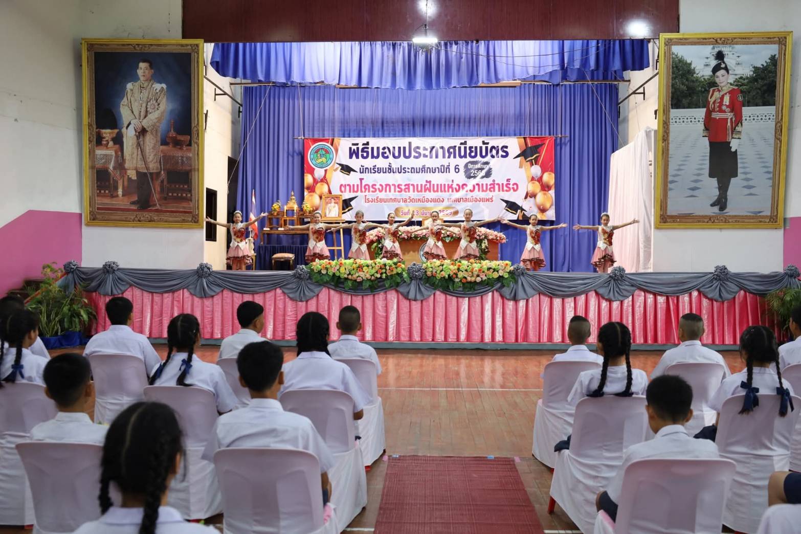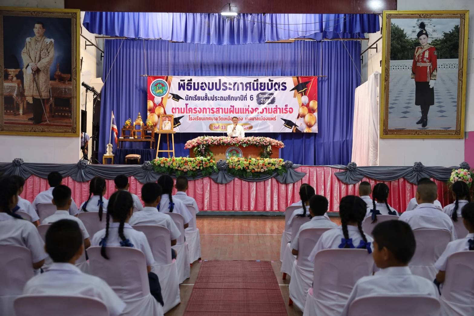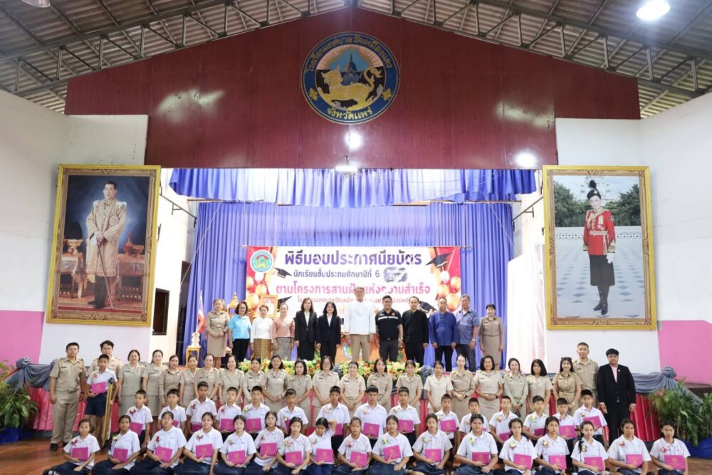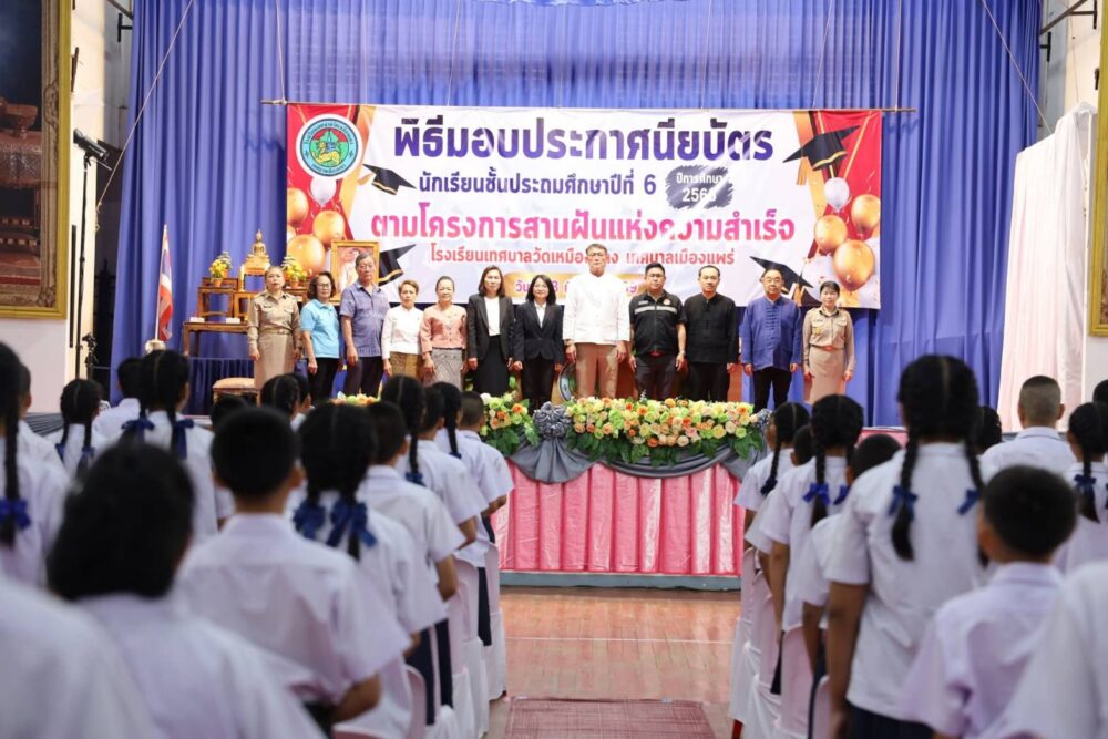 วันนี้ 13 มีนาคม 2569 เวลา 08.30 น. นายสุริยา อินต๊ะนอน นายกเทศมนตรีเมืองแพร่ พร้อมด้วยรองนายกเทศมนตรีเมืองแพร่ รองปลัดเทศบาล ผู้อำนวยการกองการศึกษา และเจ้าหน้าที่กองการศึกษา เข้าร่วมพิธีมอบประกาศนียบัตรให้แก่นักเรียนระดับชั้นประถมศึกษาปีที่ 6 ตาม โครงการสานฝันแห่งความสำเร็จ ประจำปีการศึกษา 2568 ณ โรงเรียนเทศบาลวัดเหมืองแดง เพื่อแสดงความยินดีและสร้างความภาคภูมิใจให้กับนักเรียนที่สำเร็จการศึกษา พร้อมทั้งเป็นการปลูกฝังความกตัญญูกตเวทีต่อครูผู้สอนและสถาบันการศึกษา