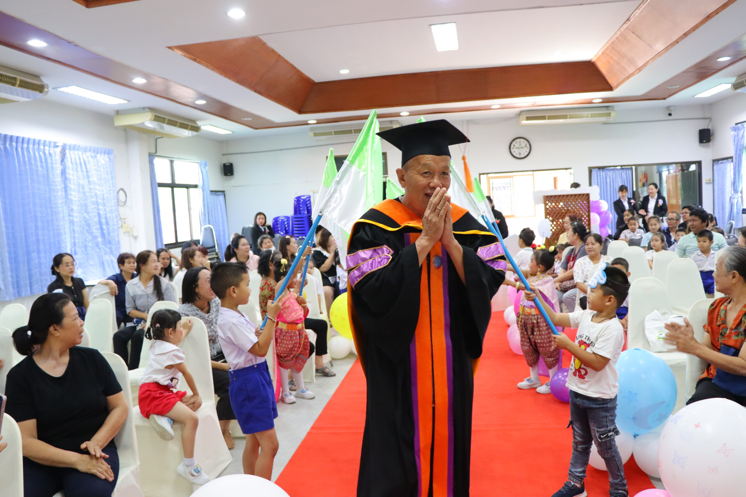ทั้งนี้ ภายในงานมีคณะผู้บริหาร นายพงษ์ศักดิ์ แก้วธรรมานุกูล ประธานคณะกรรมการบริหารสถานศึกษา สมาชิกสภาองค์การบริหารส่วนตำบลเวียงทอง นายสมยศ ยอดสอน รองปลัด รักษาราชการแทนปลัดองค์การบริหารส่วนตำบลเวียงทอง หัวหน้าส่วนราชการ คณะครู บุคลากรทางการศึกษา จากศูนย์พัฒนาเด็กเล็กและโรงเรียนอนุบาลองค์การบริหารส่วนตำบลเวียงทอง ตลอดจนผู้ปกครองนักเรียน เข้าร่วมแสดงความยินดีอย่างพร้อมเพรียง