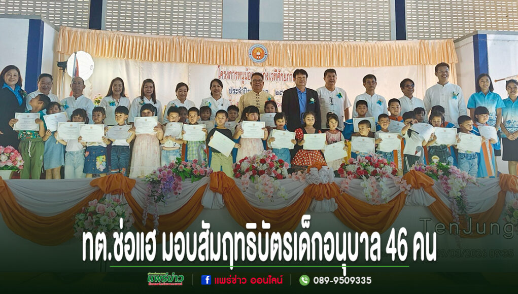 ในการนี้ นายอดุลย์ ไหลทุ่ง นายกเทศมนตรีตำบลช่อแฮ ให้เกียรติเป็นประธานในพิธี พร้อมมอบสัมฤทธิบัตรให้แก่เด็กนักเรียนระดับชั้นอนุบาลปีที่ 3 จำนวน 46 คน ที่สำเร็จการศึกษาตามหลักสูตรการศึกษาปฐมวัย และร่วมแสดงความยินดีกับนักเรียนและผู้ปกครอง