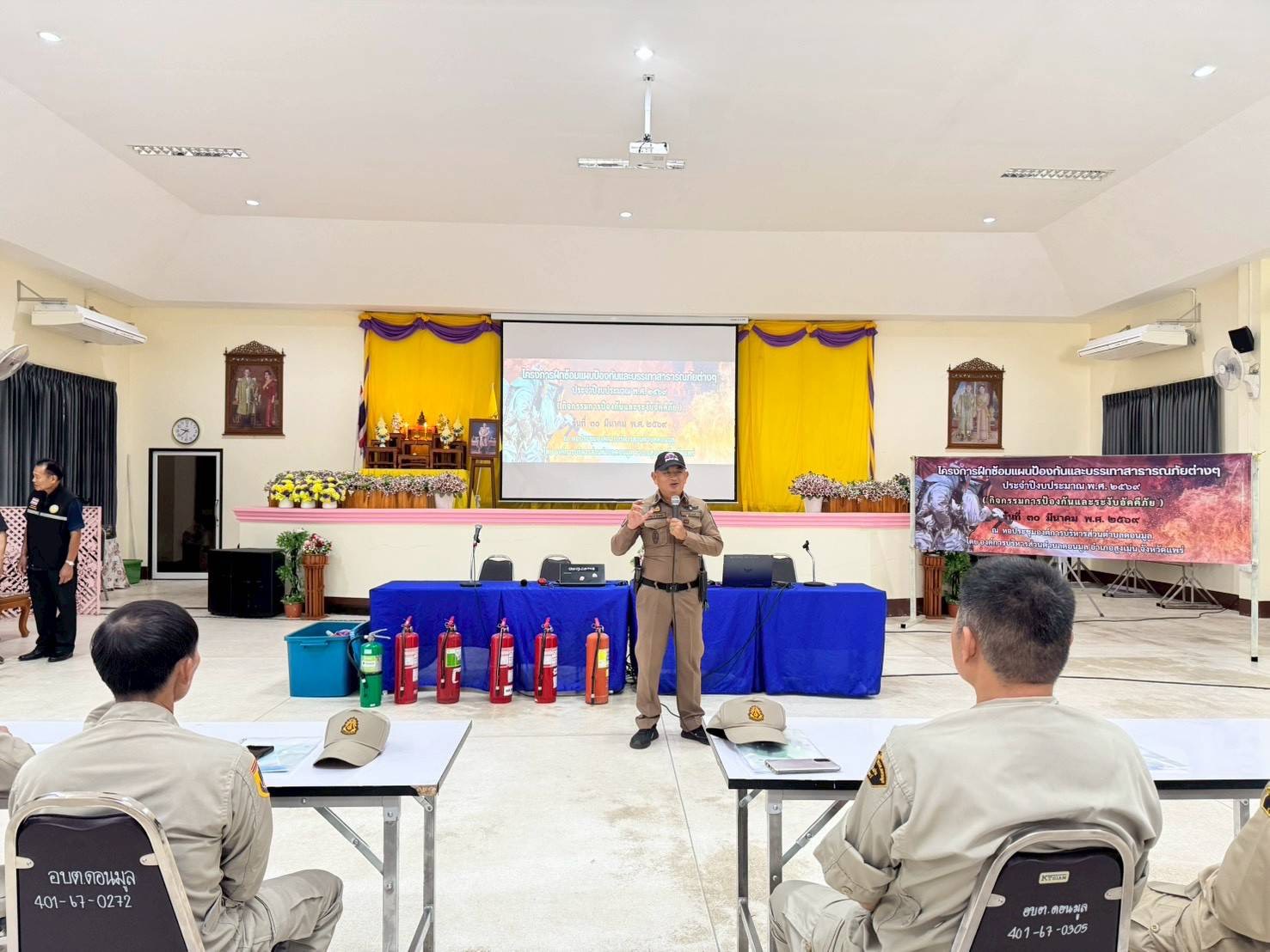 วันที่ 30 มีนาคม 2569 งานป้องกันและบรรเทาสาธารณภัย องค์การบริหารส่วนตำบลดอนมูล ดำเนินโครงการฝึกซ้อมแผนป้องกันและบรรเทาสาธารณภัยต่าง ๆ ประจำปีงบประมาณ พ.ศ. 2569 (กิจกรรมการป้องกันและระงับอัคคีภัย) เพื่อเสริมสร้างความรู้และเพิ่มศักยภาพในการรับมือกับเหตุสาธารณภัยให้แก่บุคลากรในพื้นที่