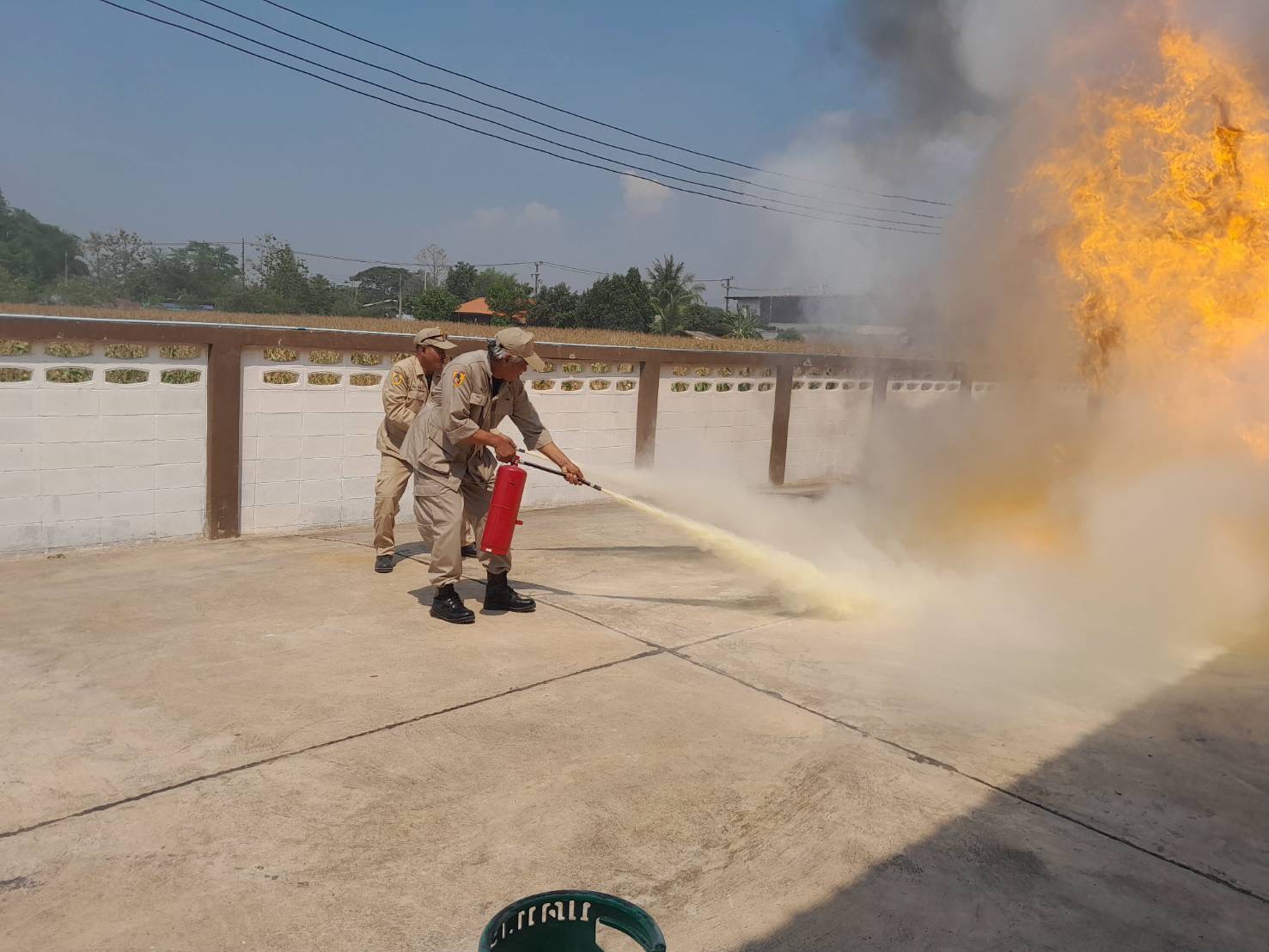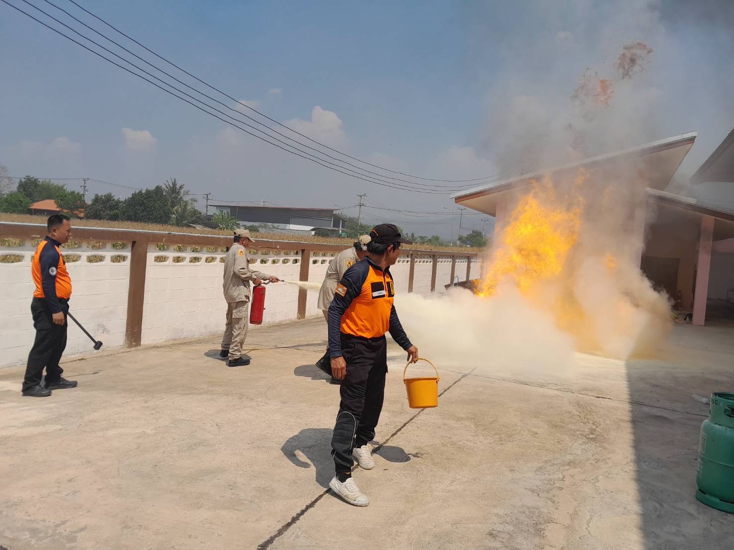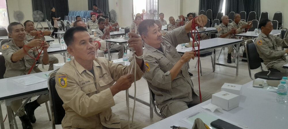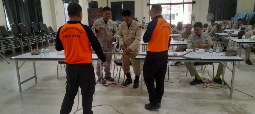 นอกจากนี้ยังมีการฝึกภาคปฏิบัติ อาทิ การฝึกผูกเงื่อนเชือกสำหรับงานกู้ภัย การสาธิตและทดลองใช้ถังดับเพลิงเบื้องต้น (ถังดับเพลิงชนิดเคมีแห้ง) ในการระงับเหตุอัคคีภัย รวมถึงการป้องกันอุบัติเหตุจากก๊าซหุงต้ม เพื่อให้ผู้เข้าร่วมสามารถนำความรู้ไปประยุกต์ใช้ในสถานการณ์จริงได้อย่างถูกต้อง