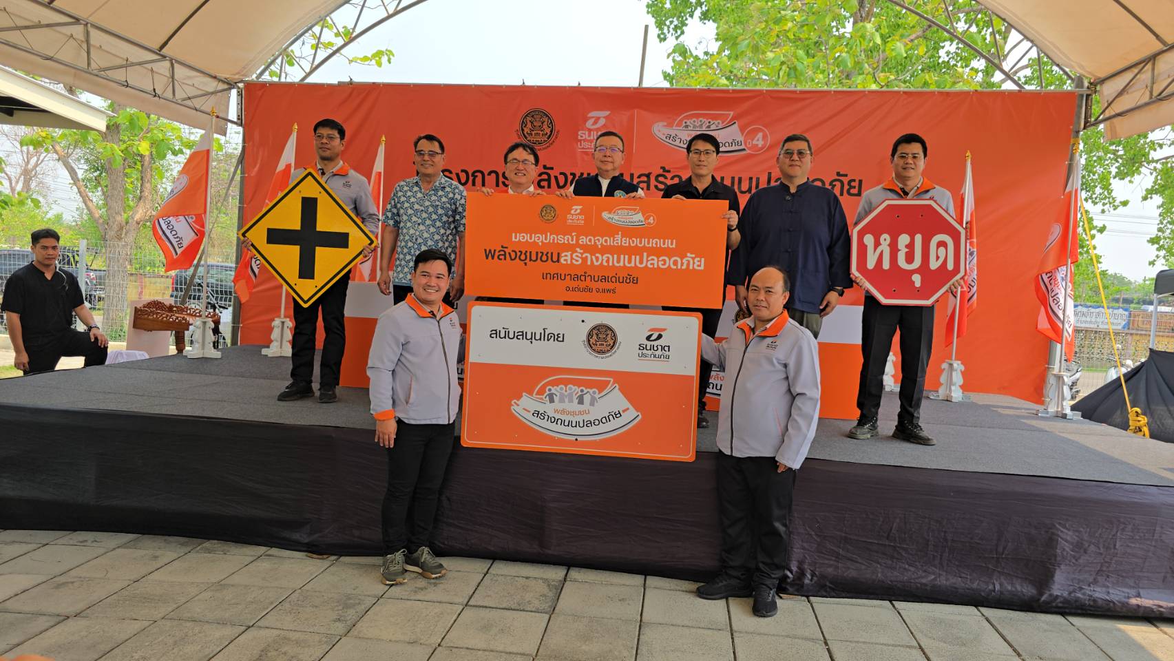 เมื่อเวลา 10.30 น. วันที่ 2 เมษายน 2569 นายชัยสิทธิ์ ชัยสัมฤทธิ์ผล รอง ผวจ.แพร่ เป็นประธานในพิธีลงนามบันทึกความเข้าใจความร่วมมือ “โครงการ พลังชุมชนสร้างถนนปลอดภัย ปี 4” มอบอุปกรณ์ลดจุดเสี่ยงบนท้องถนนพร้อมอาณัติสัญญาณจราจร จำนวน 13 รายการ เพื่อยกระดับความปลอดภัยให้กับถนนบริเวณทางโค้งหน้าป้ายหมู่บ้านปากพวก หมู่ 10 ต.เด่นชัย อ.เด่นชัย จ.แพร่ โดยมี นายสุวัฒน์ ระดมสุทธิกุล ที่ปรึกษาด้านการบริหารสินไหมทดแทน บริษัท ธนชาตประกันภัย จำกัด (มหาชน) ลงนามร่วมกับ นายประจักร์ จินดาจำรูญ นายอำเภอเด่นชัย นายดำรงเกียรติ กิตติประภัสร์ นายกเทศมนตรีตำบลเด่นชัย และนายพุฒิเศรษฐ์ สุธรรมศุภเจริญ กำนันตำบลเด่นชัย