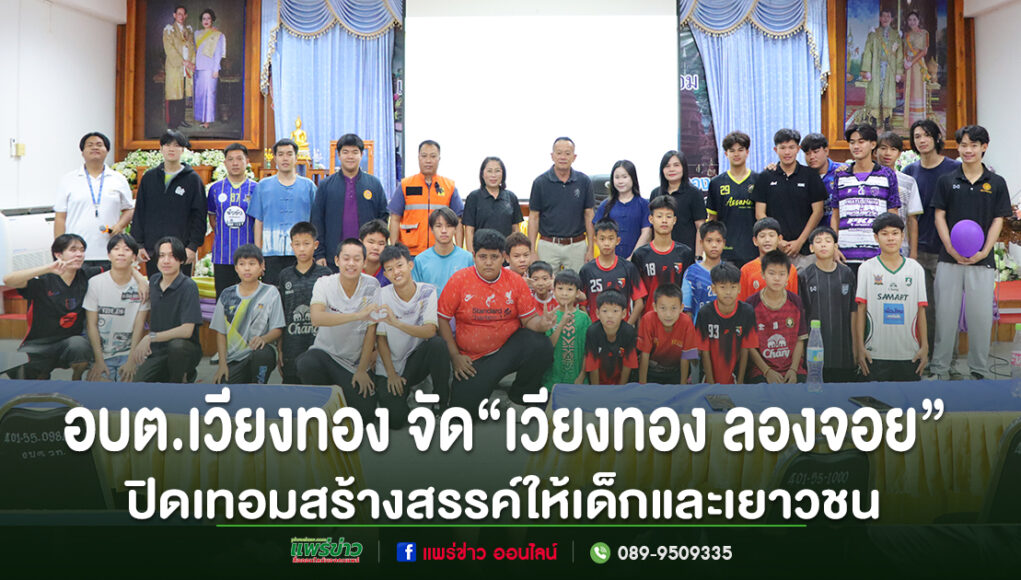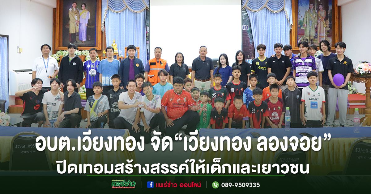 วันที่ 8 เมษายน 2569 นายเสรี เวียงนาค นายกอบต.เวียงทอง เป็นประธานในพิธีเปิดโครงการ “เวียงทอง ลองจอย” ปิดเทอมสร้างสรรค์ ซึ่งจัดขึ้นโดย สำนักงานกองทุนสนับสนุนการสร้างเสริมสุขภาพ ร่วมกับเครือข่ายพลังโจ๋ สร้างสรรค์แบ่งปันความสุข และ กรมป้องกันและบรรเทาสาธารณภัย จังหวัดแพร่ เพื่อเปิดพื้นที่กิจกรรมให้เด็กและเยาวชนในช่วงปิดภาคเรียนฤดูร้อนได้ใช้เวลาว่างให้เกิดประโยชน์