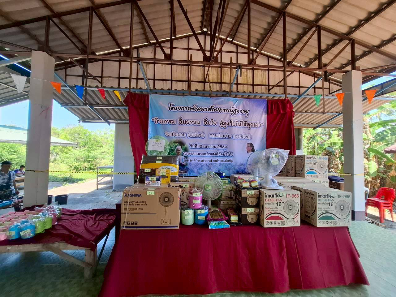 นอกจากนี้ ภายในงานยังมีการจับสลากแจกของรางวัลให้แก่ผู้สูงอายุ เพื่อสร้างความสุขและรอยยิ้มแก่ผู้เข้าร่วมกิจกรรม โดยได้รับการสนับสนุนของรางวัลจาก นางศิริวรรณ ปราศจากศัตรู คณะผู้บริหาร สมาชิกสภาองค์การบริหารส่วนตำบลเด่นชัย ผู้นำหมู่บ้าน ห้างหุ้นส่วนจำกัดต่าง ๆ รวมถึงประชาชนในพื้นที่ที่ร่วมกันสนับสนุนกิจกรรมในครั้งนี้อย่างพร้อมเพรียง