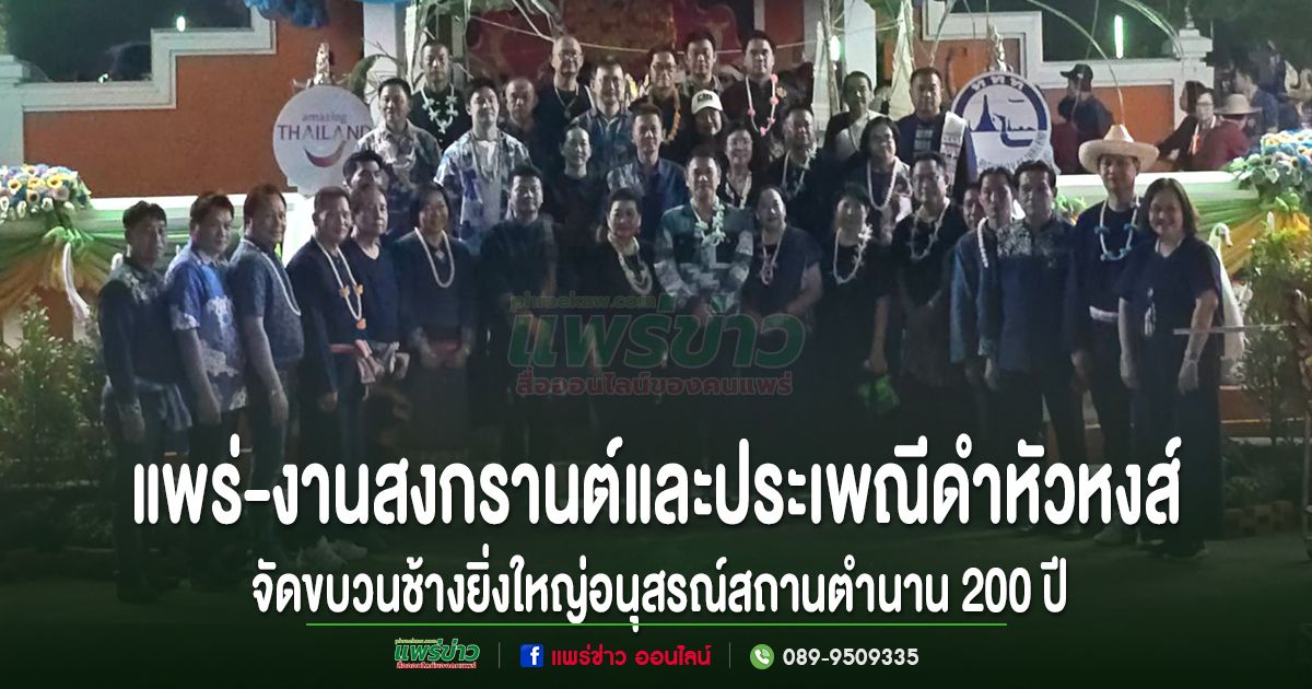 เมื่อวันที่ 16 เมษายน 2569 เวลา 17.00 น ณ อนุสรณ์สถานตำนานหงส์ หมู่ที่ 7 ต.วังหงส์ อ.เมืองแพร่ นายคุณากร คชหิรัญรอง ผวจ.แพร่ เป็นประธาน เปิดงานประเพณีสงกรานต์และดำหัวหงส์ โดยมี นายเอกชัย หงส์อ้าย นายกเทศมนตรีตำบลวังหงส์ กล่าวรายงานว่า พร้อมด้วยคณะผู้บริหาร สมาชิกสภาฯ และฝ่ายปกครองในพื้นที่ โดยได้รับเกียรติจาก นางศิริวรรณ ปราศจากศัตรู อดีต สส.แพร่ นายชนาธิป ศุภศิริ สส.แพร่ เขต 2 หัวหน้าส่วนราชการเข้าร่วมรับชมขบวนช้างและขบวนแห่ของหมู่บ้าน-ตำบลต่างๆที่มาร่วมอย่างสวยงาม