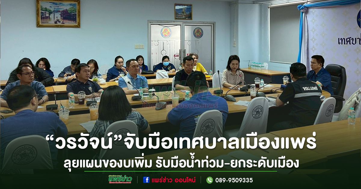 วันที่ 20 เมษายน 2569 เวลา 10.30 น. ณ ห้องประชุมอาคารป้องกันและบรรเทาสาธารณภัย เทศบาลเมืองแพร่ นายวรวัจน์ เอื้ออภิญกุล อดีต ส.ส.จังหวัดแพร่ และอดีตรัฐมนตรีว่าการกระทรวงศึกษาธิการ นางภูวษา สินธุวงศ์ ตัวแทนพรรคเพื่อไทย ประจำจังหวัดแพร่ ร่วมประชุมกับคณะผู้บริหารและหัวหน้าส่วนราชการ นำโดย นายประวิน จิรพงษ์สุวรรณ นายสน ลือวัฒนานนท์ รองนายกเทศมนตรีเมืองแพร่ และนายผดุงเกียรติ เอื้อรพีกุล เลขานุการนายกเทศมนตรีเมืองแพร่ เพื่อกำหนดแนวทางขอรับงบประมาณเพิ่มเติมจากสำนักงบประมาณ นำมาขับเคลื่อนการพัฒนาเมืองให้ตอบโจทย์ปัญหาปัจจุบัน