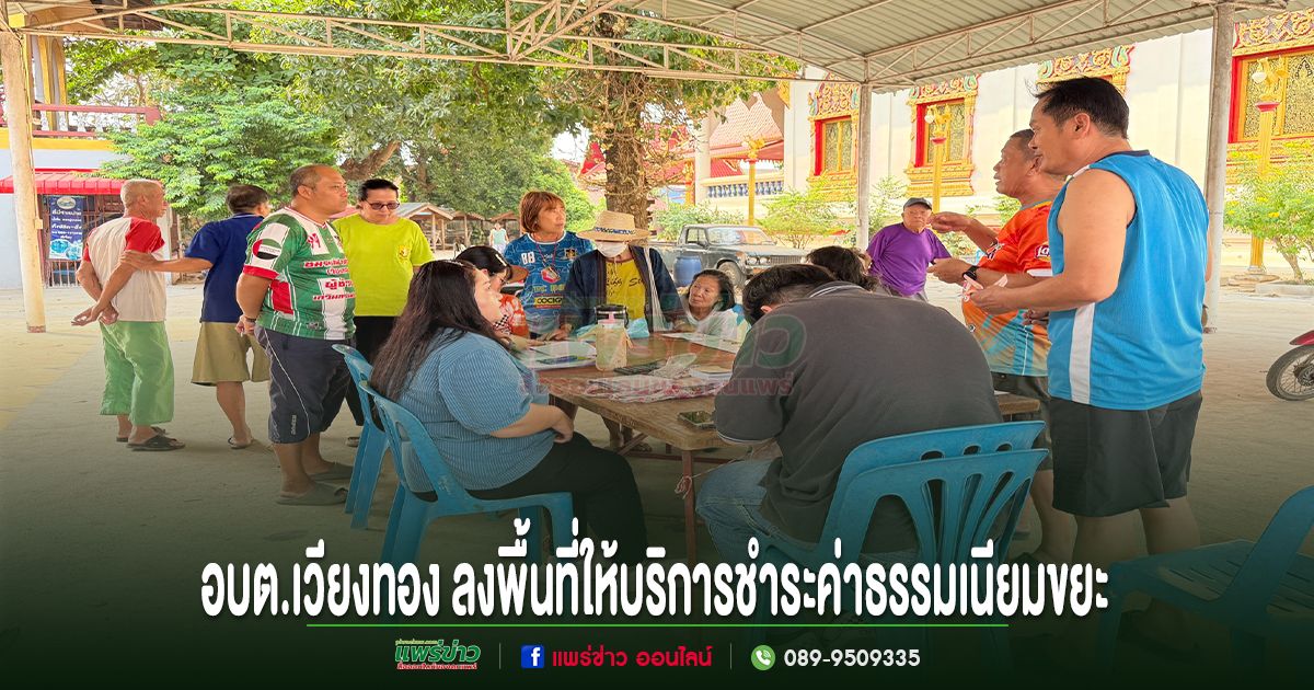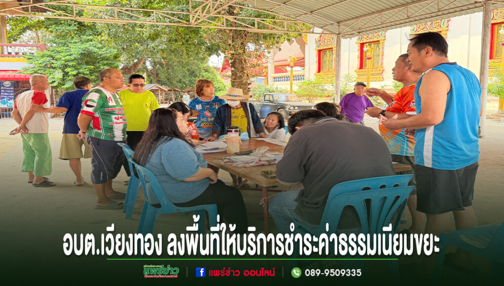 วันที่ 23 เมษายน 2569 นายเสรี เวียงนาค นายกองค์การบริหารส่วนตำบลเวียงทอง มอบหมายให้งานจัดเก็บรายได้ กองคลัง องค์การบริหารส่วนตำบลเวียงทอง ลงพื้นที่ให้บริการรับชำระค่าธรรมเนียมขยะมูลฝอย ประจำปี พ.ศ. 2569 เพื่ออำนวยความสะดวกให้กับพี่น้องประชาชนในการชำระค่าธรรมเนียมได้ใกล้บ้าน สะดวก รวดเร็ว และช่วยประหยัดเวลา