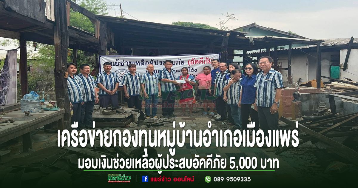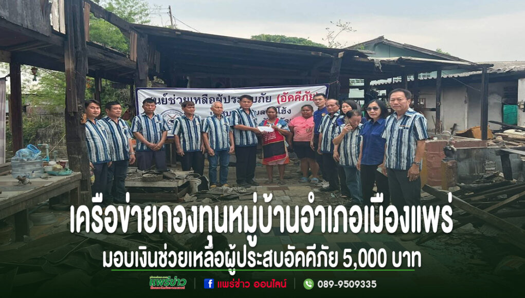 เครือข่ายกองทุนหมู่บ้านและสวัสดิการสมาชิกกองทุนหมู่บ้านอำเภอเมืองแพร่ นำโดย กำนันภาสกร หม้อกรอง ประธานกองทุนฯ ได้ลงพื้นที่มอบเงินช่วยเหลือแก่สมาชิกกองทุนหมู่บ้านที่ประสบเหตุอัคคีภัย ในพื้นที่หมู่ที่ 6 ตำบลทุ่งโฮ้ง อำเภอเมืองแพร่ จังหวัดแพร่