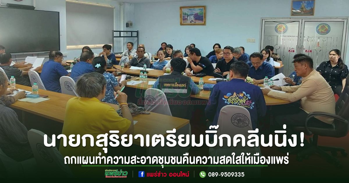 วันที่ 27 เม.ย. 69 เวลา 09.00 น. นายสุริยา อินต๊ะนอน นายกเทศมนตรีเมืองแพร่ เป็นประธานในการประชุมขับเคลื่อนแผนงานทำความสะอาดชุมชนในเขตเทศบาลเมืองแพร่ ณ ห้องประชุมอาคารป้องกันและบรรเทาสาธารณภัย