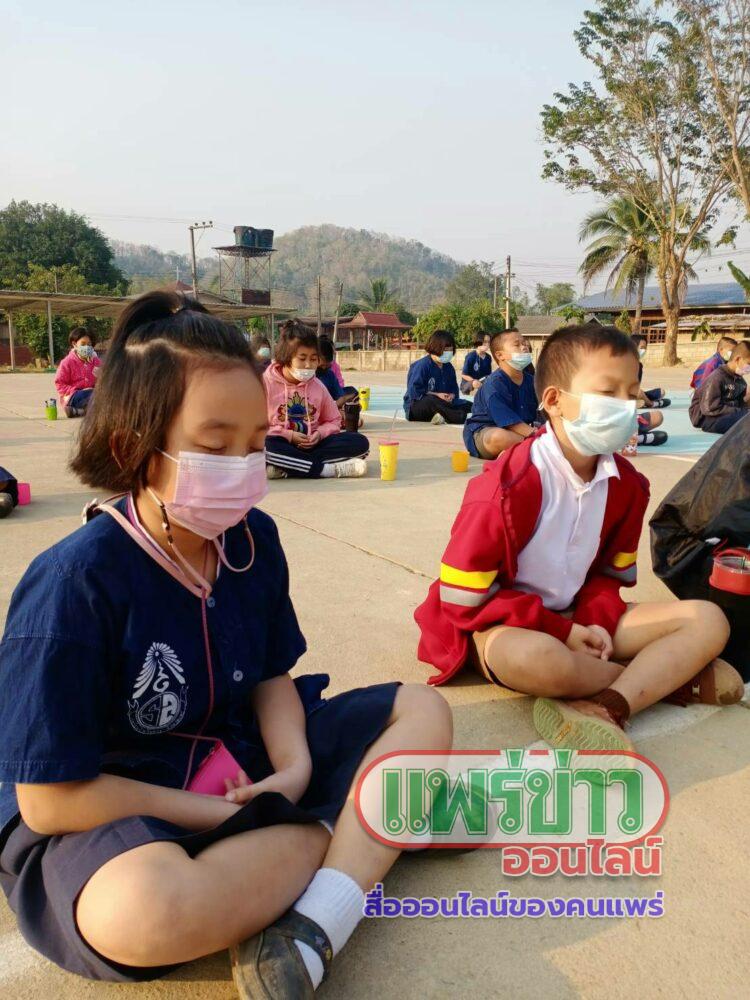 ….เมื่อเช้าวันที่ 5 กุมภาพันธ์ 2564 ที่ ร.ร.บ้านไร่หลวง ต.นาพูน อ.วังชิ้น จ.แพร่ สังกัดสำนักงานเขตพื้นที่การศึกษาประถมศึกษาแพร่ เขต 2(สพป.แพร่ เขต 2) โดยการนำของนายเกียรติศักดิ์ ชัยยาณะ ผอ.ร.ร.บ้านไร่หลวง นำคณะครูและนักเรียนโรงเรียนบ้านไร่หลวงจัดกิจกรรมนั่งสมาธิ ฝึกจิต เจริญสติปัญญา