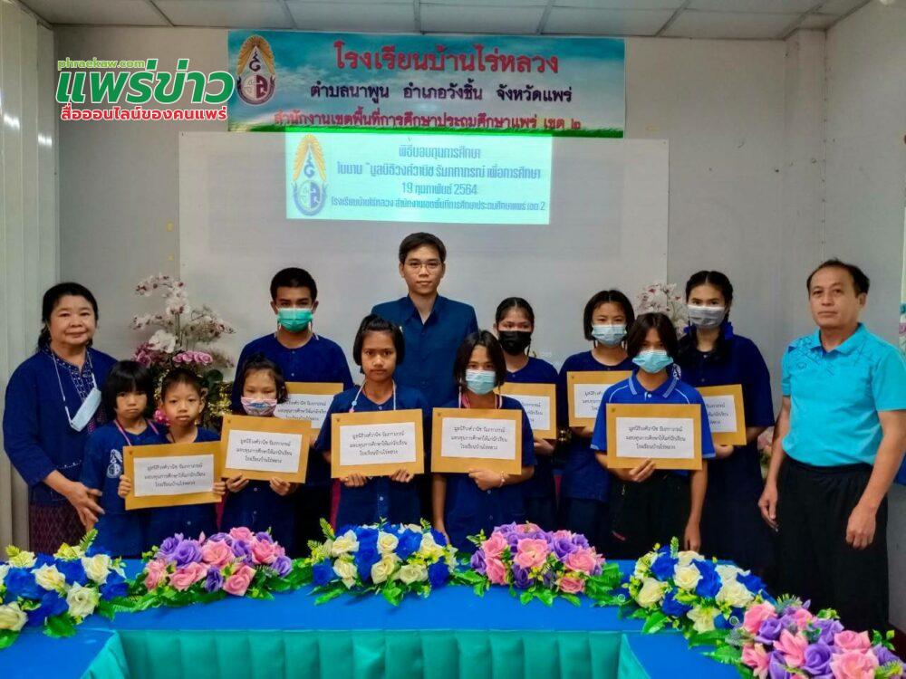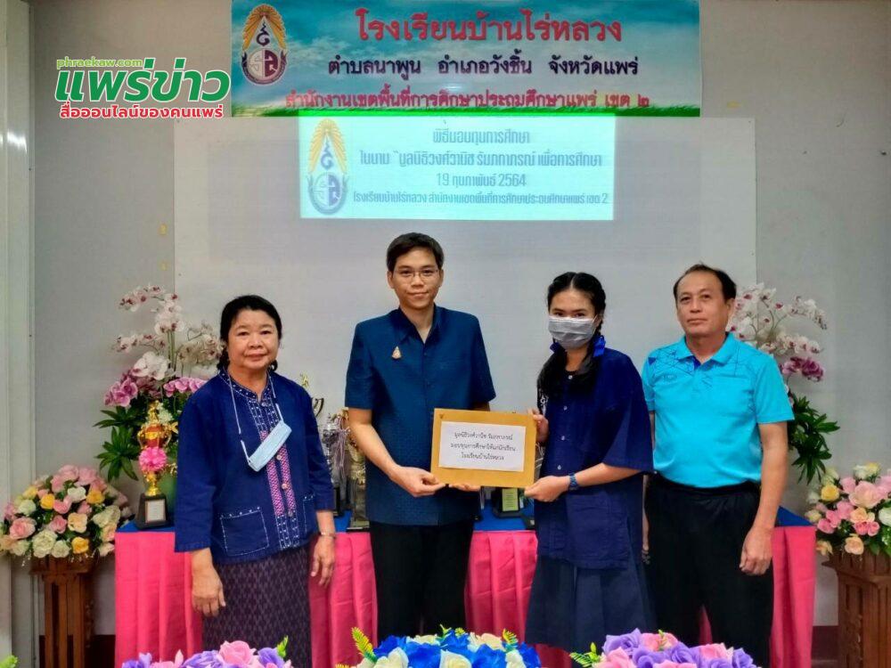 เมื่อวันที่19 กุมภาพันธ์ 2564 ที่โรงเรียนบ้านไร่หลวง ตำบลนาพูน อำเภอวังชิ้น จังหวัดแพร่สำนักงานเขตพื้นที่การศึกษาประถมศึกษาแพร่ เขต 2 (สพป.แพร่เขต 2) นายเกียรติศักดิ์ ชัยยาณะ ผอ.ร.ร.บ้านนาพูนเป็นประธานมอบทุนพิธีมอบทุนการศึกษา ในนาม “มูลนิธิวงศ์วานิช รัมภกาภรณ์ เพื่อการศึกษา จำนวน10ทุนๆละ500บาทรวทั้งหมด5,000บาทโดยมีนักเนียนที่ได้รับทุนดังนี้