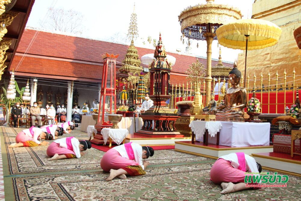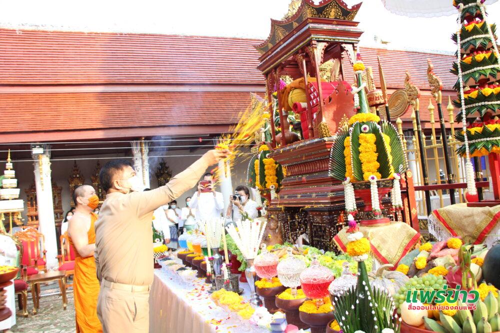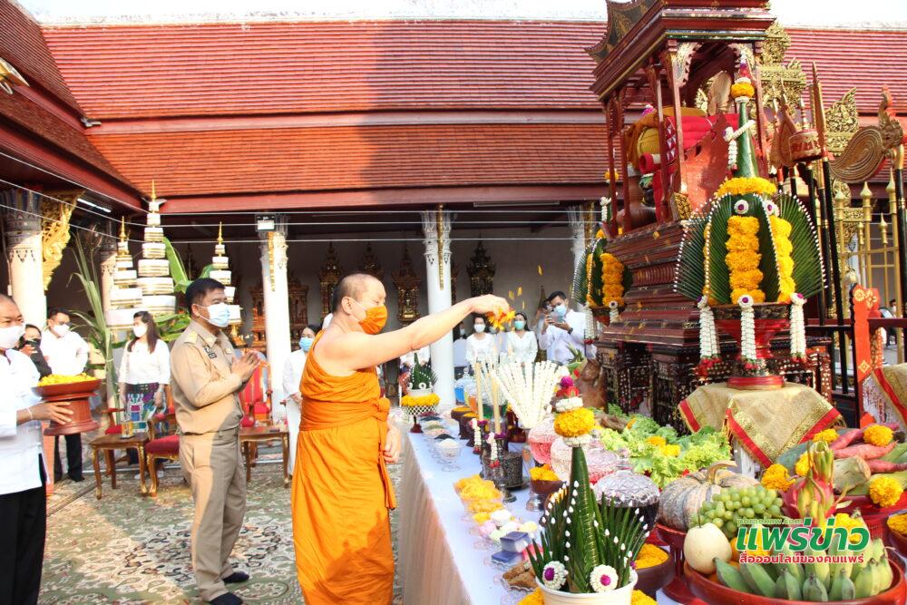 วันนี้ที่ 24 ก.พ.65 เวลา 07.30 น ลานพระธาตุช่อแฮ พระอารามหลวง พระโกศัยเจติยารักษ์ รองเจ้าคณะจ.แพร่ ประธานฝ่ายสงฆ์ และนายสมหวัง พ่วงบางโพ ผู้ว่าราชการจ.แพร่ เป็นประธานฝ่ายฆราวาส จุดธูปเทียนบูชาองค์พระธาตุ ในพิธีบวงสรวงองค์พระธาตุช่อแฮและเทพยาดาอารักษ์ ทั่วจักรวาล เป็นพิธีกรรมดังเดิมที่จัดสืบทอดกันมานับ 100 กว่าปี ในงานประเพณีไหว้พระธาตุช่อแฮ เมืองแพร่แห่ตงหลวง ซึ่งจัดทำมาทุกปี ปีนี้เกิดสถานการณ์โรคโควิด 19 ระบาด ทำให้งานที่จัดขึ้นตามจันทรคติวันขึ้น 9-15 ค่ำเดือน 4 ใต้ เดือน 6 เหนือ ต้องเลื่อนไป แต่เพื่อสืบสานประเพณีดังเดิมไม่ให้สูญหายไปในปีใดปีหนึ่ง จึงจัดออนไลน์ ทางfbผ่านเพจวัดพระธาตุช่อแฮ พระอารามหลวง จัดพิธีกรรมอย่างยิ่งใหญ่เหมือนเดิม พุทธศาสนิกชนที่อยู่ทางบ้านสามารถรับชมและร่วมงานไปพร้อมๆกัน พิธีเริ่มขึ้น เวลา 06.00 น.ขึ้นท้าวทั้งสี่ บอกกล่าวเทวดา